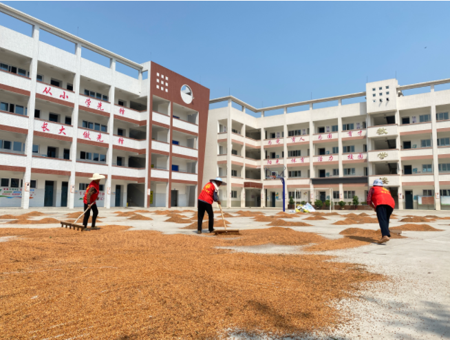 黄家镇党员志愿者为农民晾晒高粱。(资料图)