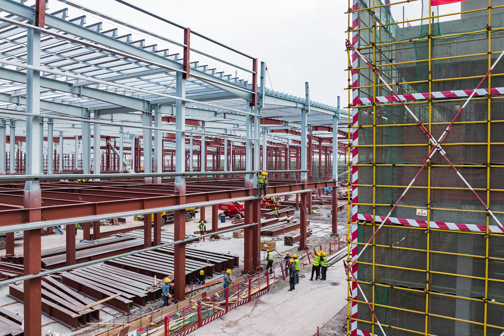 工人加紧开展内部结构作业