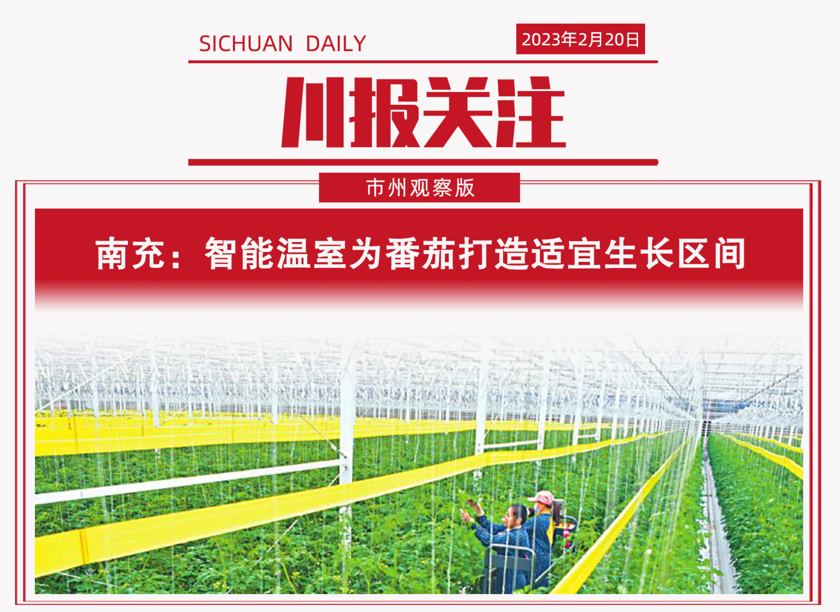 2月14日上午,南充市中法农业科技园的智能温室内,农民正驾驶有轨升降机行进在番茄栽种区,对番茄藤进行修剪、绕蔓处理。在这个智能温室中,气候控制系统能采集所有传感器数据,对硬件设施进行自动化控制,将温度、湿度、光照、水肥、气体成分等控制在适宜番茄生长的区间内。