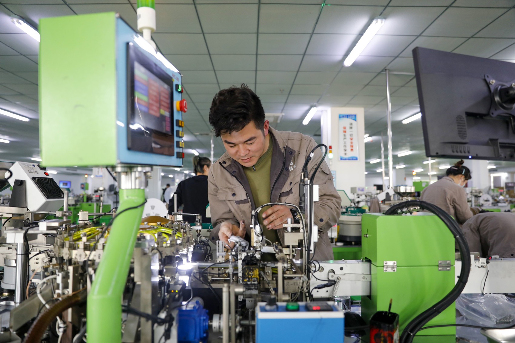 2月3日,在四川省南充市顺庆区的四川凯普松电子产业有限公司电容器生产车间,工人们正操作机械设备加班加点赶制电容器,确保按时交付订单。黎涛 摄