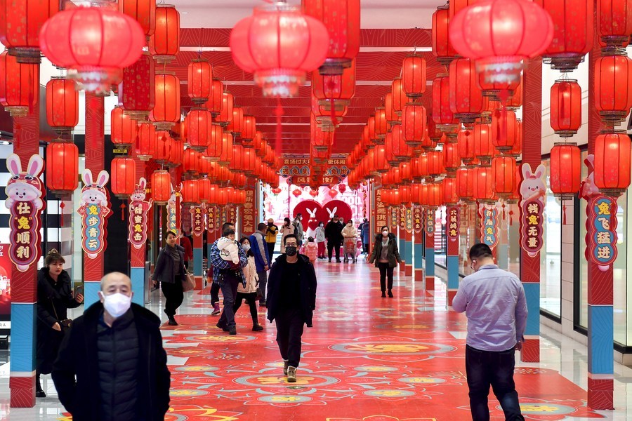 People shop at a shopping mall in Changchun, northeast China's Jilin Province, Jan. 23, 2023. (Xinhua/Xu Chang)
