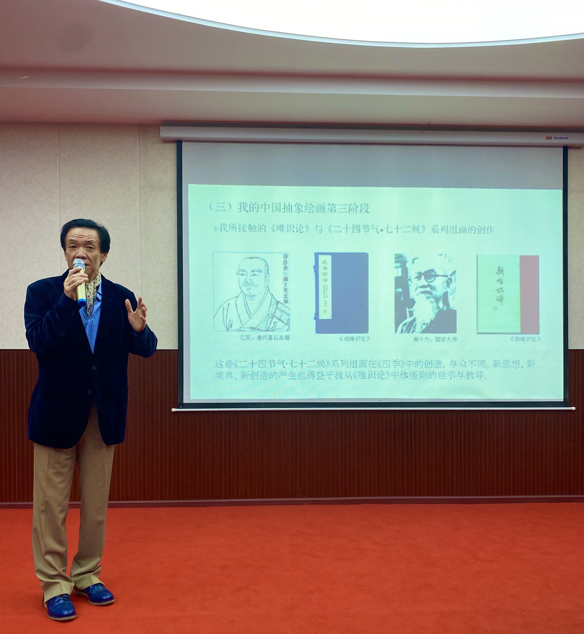 历时五年创作《四季》系列组画,著名画家徐冬冬用抽象绘画语言,创新性地描绘《二十四节气•七十二候》。作品里,他对宇宙、生命进行了深切的思考,使中国哲学里的抽象概念成为其独特的绘画语言。10月11日,徐冬冬做客中国东盟-艺术学院,围绕“静心《四季》里 冥想天地间——中国抽象绘画流派的建立 ”这一主题开讲。两个小时的讲座里,他“干货”频出。从新作《四季》组画为切口,他带领艺术迷们一路追溯中国艺术文化千年演变,和自己问道天地进行艺术创作的所思所感。