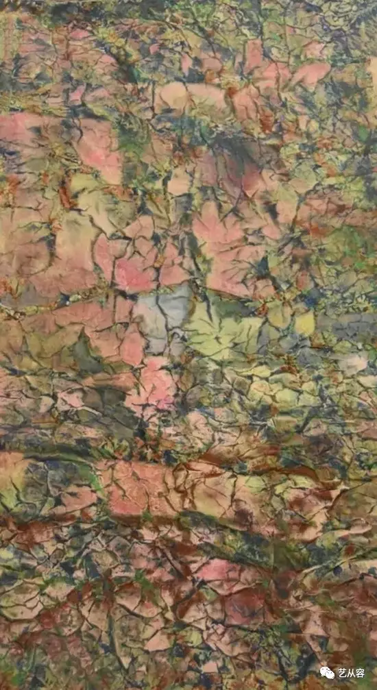 整体观看《四季》组画系列中的《二十四节气•七十二候》,画中并没有任何具象。徐冬冬将自己对于节气的感受通过色彩淋漓尽致表现。其百色入洗挥毫而泼之,水色交融如瀑而泄之,遇古老之宣纸,顿肌理万般浮现,层层叠染,一层一变,气象万千,整个画面气韵非常。无论是残雪思春,还是夏悟秋禅,徐冬冬的笔墨随意所至,无不应节。