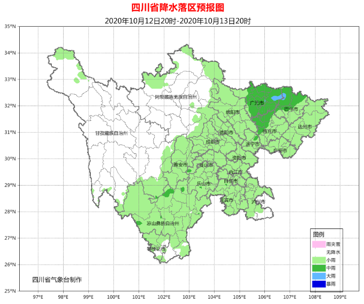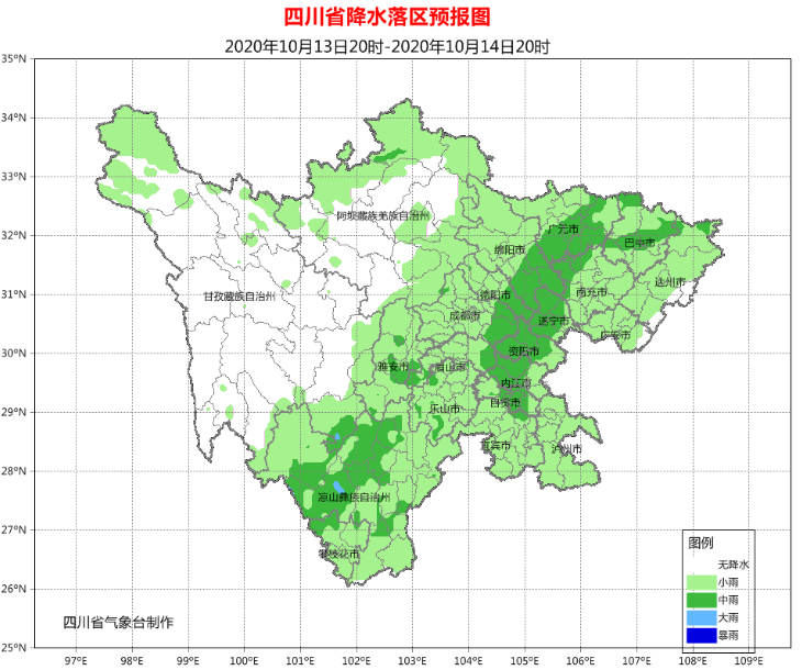 根据四川省气象台和21个市州气象台的预测,10月13日前后,四川盆地及攀西高原地区会有一次比较明显的降水过程。