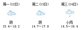 四川省气象台预计,周一到周三,全省日均最高气温将从18.2℃降至16.4℃,全省日均最低气温则从15.4℃降至14.5℃。