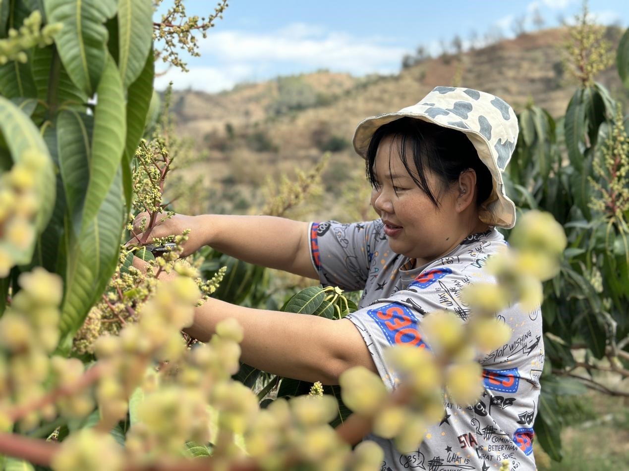 封张秀告诉记者,每年春天,芒果树的花穗会陆续从枝桠尖端长出。如果不进行人为干预,芒果8月左右即可成熟上市。但由于花朵形成时间不一,芒果成熟时间也不统一,这就“拉长了”后续采摘的“战线”。