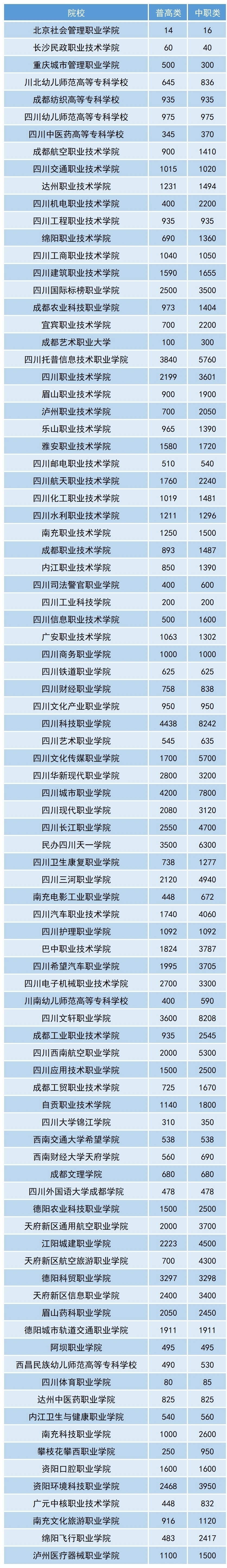 2023年,共有89所院校在四川开展高职教育单独招生。川观新闻记者2月24日获悉,为指导考生提前规划、科学备考,四川教育考试院将招生计划分“普高类”和“中职类”进行了汇总。具体如下表∶