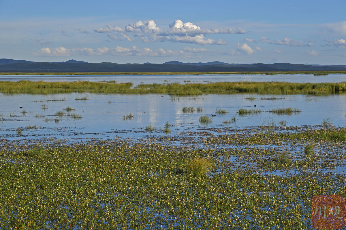 若尔盖草原上大大小小的浅水和无边的草原。 肖雨杨 摄