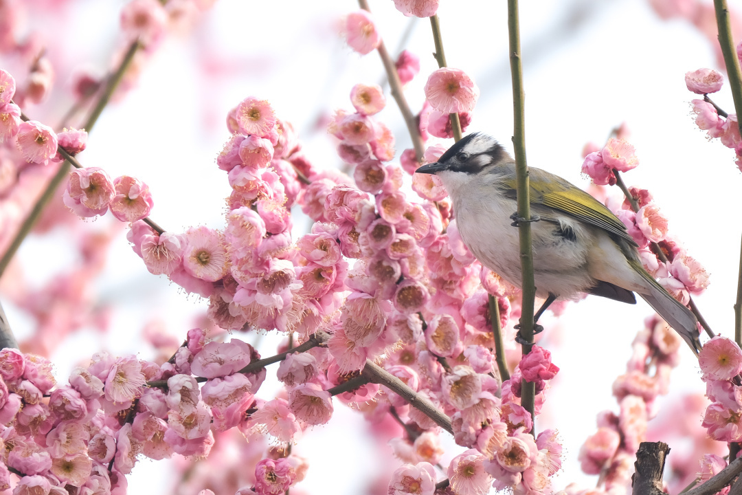 二十里的梅花小径,可以观察到白头鹎、白颊噪鹛、黄腹山雀、红头长尾山雀、蓝翅希鹛、绿翅短脚鹎、绿背山雀......各种鸟儿枝头争鸣,好一副闹春美图。