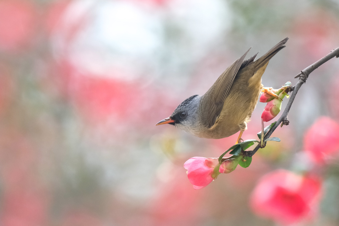 红嘴相思鸟是冬季从周边山区垂直迁徙来到城市取暖过冬的小鸟。当春花绽放时节,才有机会邂逅这个漂亮的小精灵。