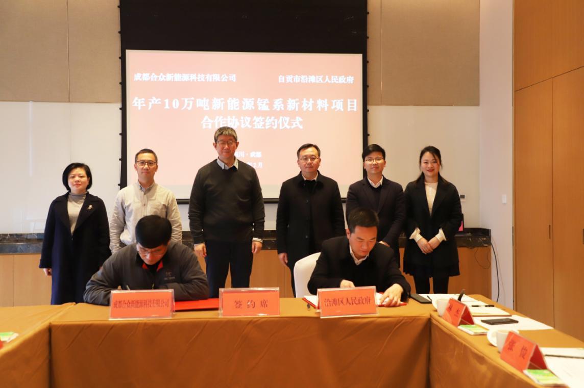 2月24日,自贡市沿滩区与成都合众新能源科技有限公司年产10万吨新能源锰系新材料项目签约仪式在成都举行。这是今年沿滩区签约落户自贡川南新材料化工园区的首个锂电材料类项目。