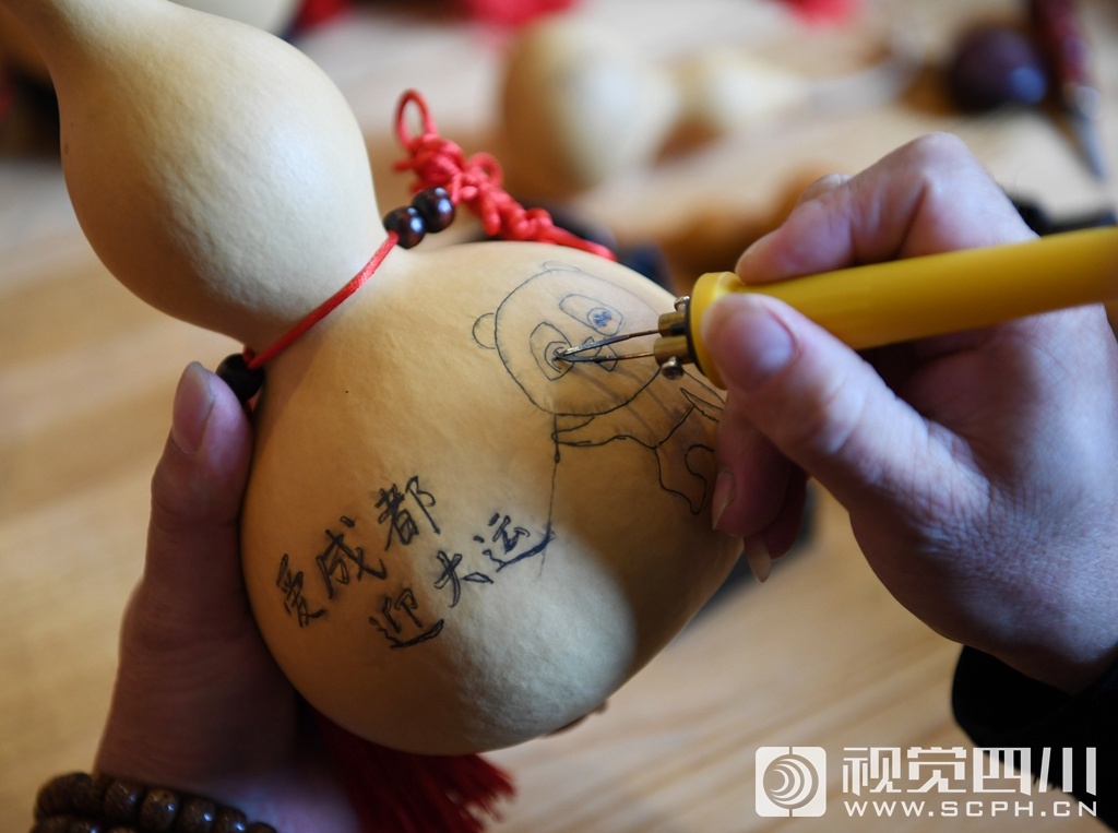 目前,陶思俊已制作了70多件大运会葫芦画作品,今年底将全部完成。“希望这批葫芦画作品能成为大运会的伴手礼进入各大比赛场馆,让来自各国的朋友了解四川、爱上成都!”陶思俊说这是他的心愿。