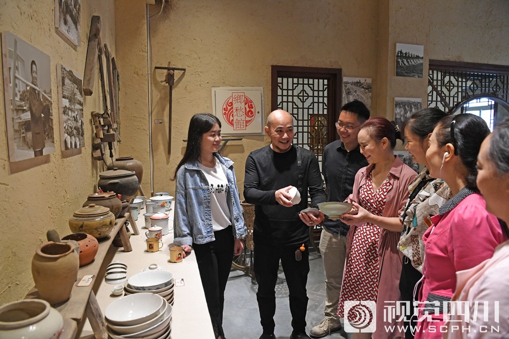今年,五星社区将原有的乡愁记忆馆改建成时光茶舍,并请陶思俊负责管理茶社。在这个800平米的茶社里,展示着从辖区居民家里收集和居民自发捐赠的物品600余件。陶思俊利用现有场地,为居民免费开设书画、扎染、葫芦画制作等不同的艺术拓展课程。