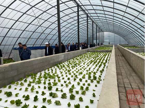 当天上午,渠江江畔,明月镇“荷月江岸”景点内,一条红木步行道在荷花池内蜿蜒。另一侧的农业种植基地中,一个鱼菜共生项目大棚里有4个圆形鱼池,以及6个种植着青菜的长方形水池,吸引了众多参观者驻足观看。而这看似简单的大棚,却是“含玄量”满满。
