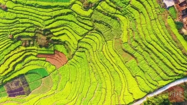 在屏山县中都镇,独特的山地梯田,遍野金黄与蓝天相接,似一幅美丽画卷。受地理位置、气候的影响,这里的花开放的比其他地方早,当人们还在川西北赏雪的时候,春天已然光临了这个小镇。