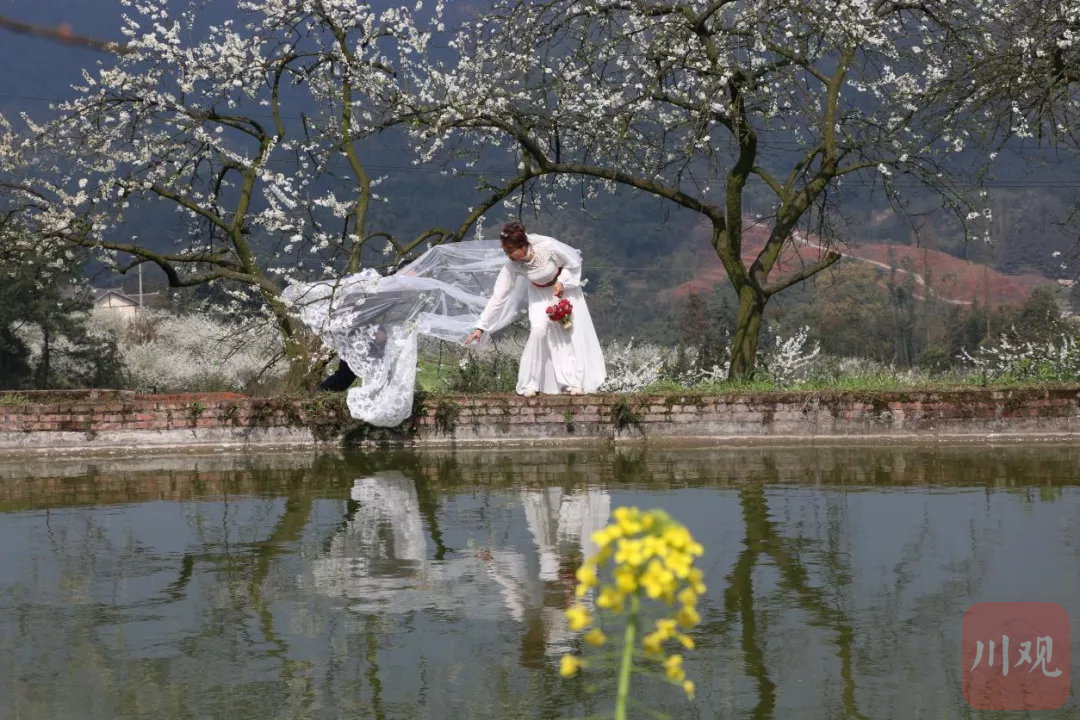 在高县胜天镇安和村、红岩村,李花悄悄绽放,一朵朵白色的花挂在枝头,花枝盈盈,如同一场春雪,染白了陌上田间,为小镇披上白色的新装。风轻轻吹动,淡淡的清香似有似无,撩人心扉。