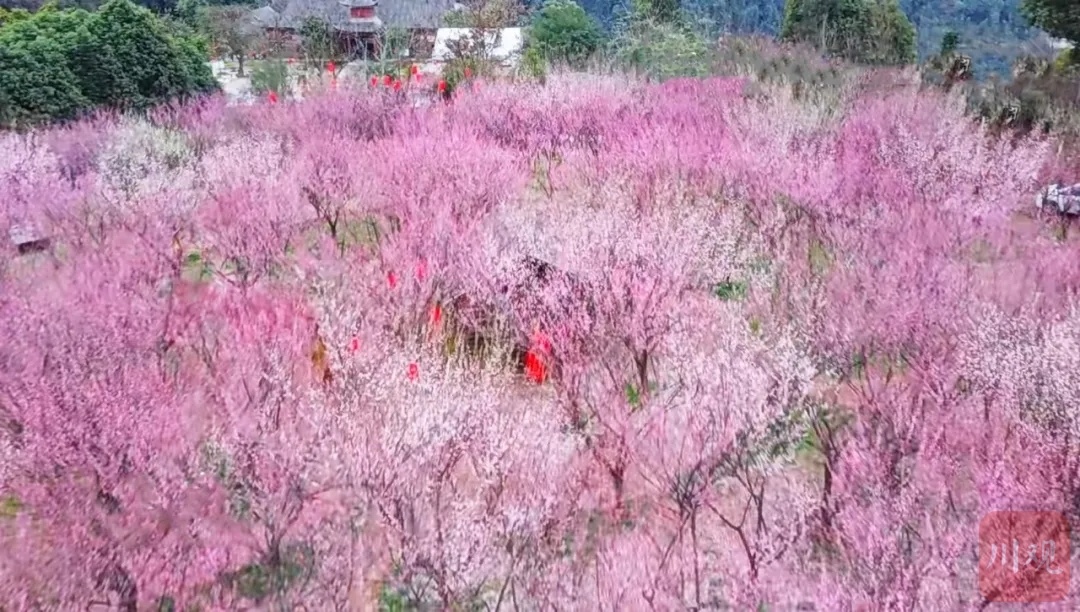 在翠屏区金坪镇金兰花谷景区,一万余株的红梅、美人梅、杏梅等正次第开放,层层叠叠,花香随风而动。在这里不仅可以赏花,还有网红秋千、摇摆桥、碰碰车、淘气堡等一系列娱乐设施,今年还新增了佤族表演、杂技表演等特色民俗表演活动,让游客们在欣赏美丽鲜花的同时感受丰富的游玩体验。