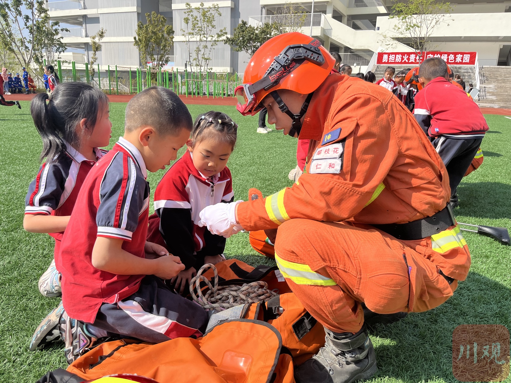 “叔叔,这个好酷,是拿来做什么的?”活动现场展示的新型水泵车、无人机等专业设备,吸引了同学们的目光,大家聚集在攀枝花市森林消防支队指战员的身边聆听讲解。