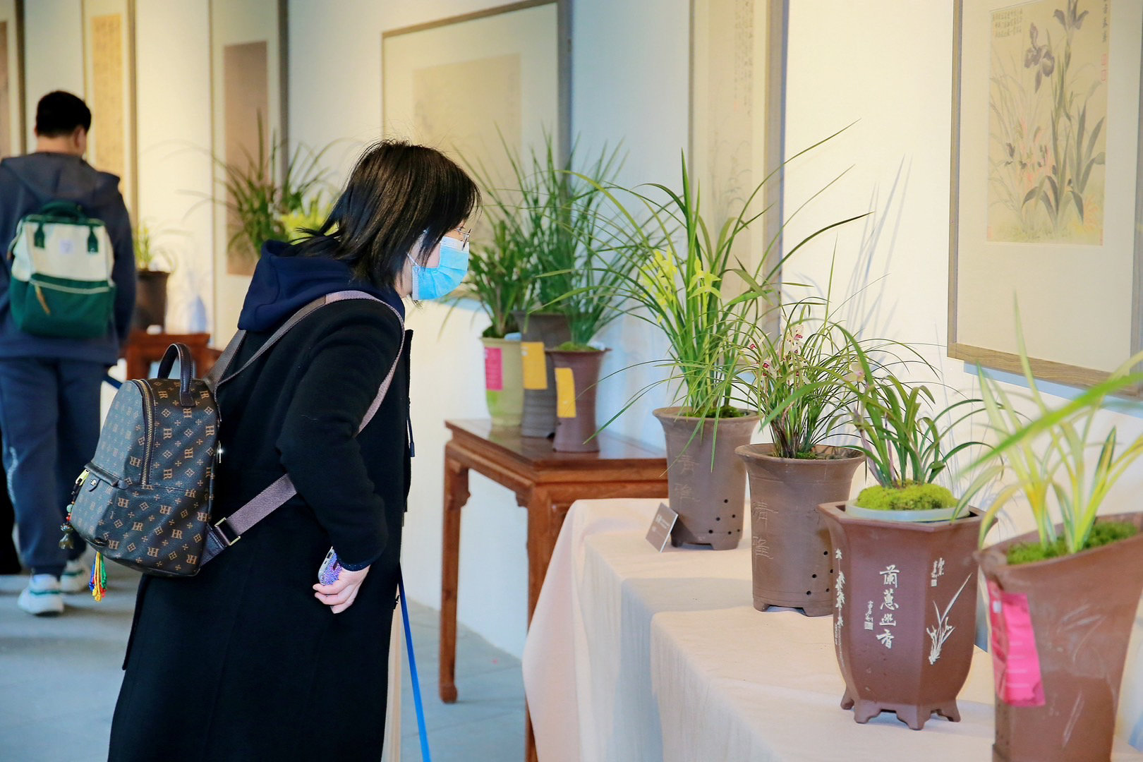 游客参观杜甫草堂兰花展。