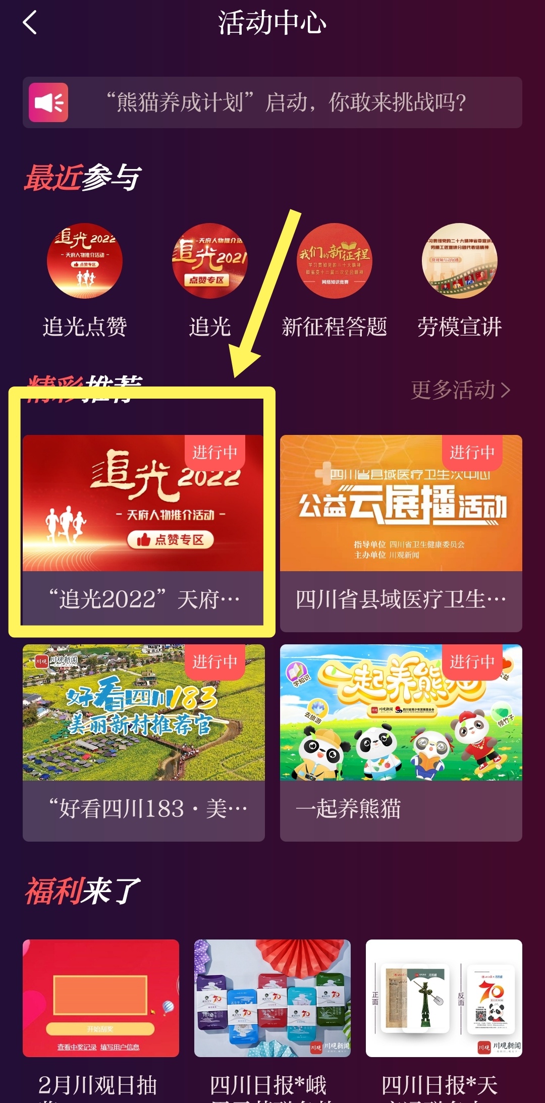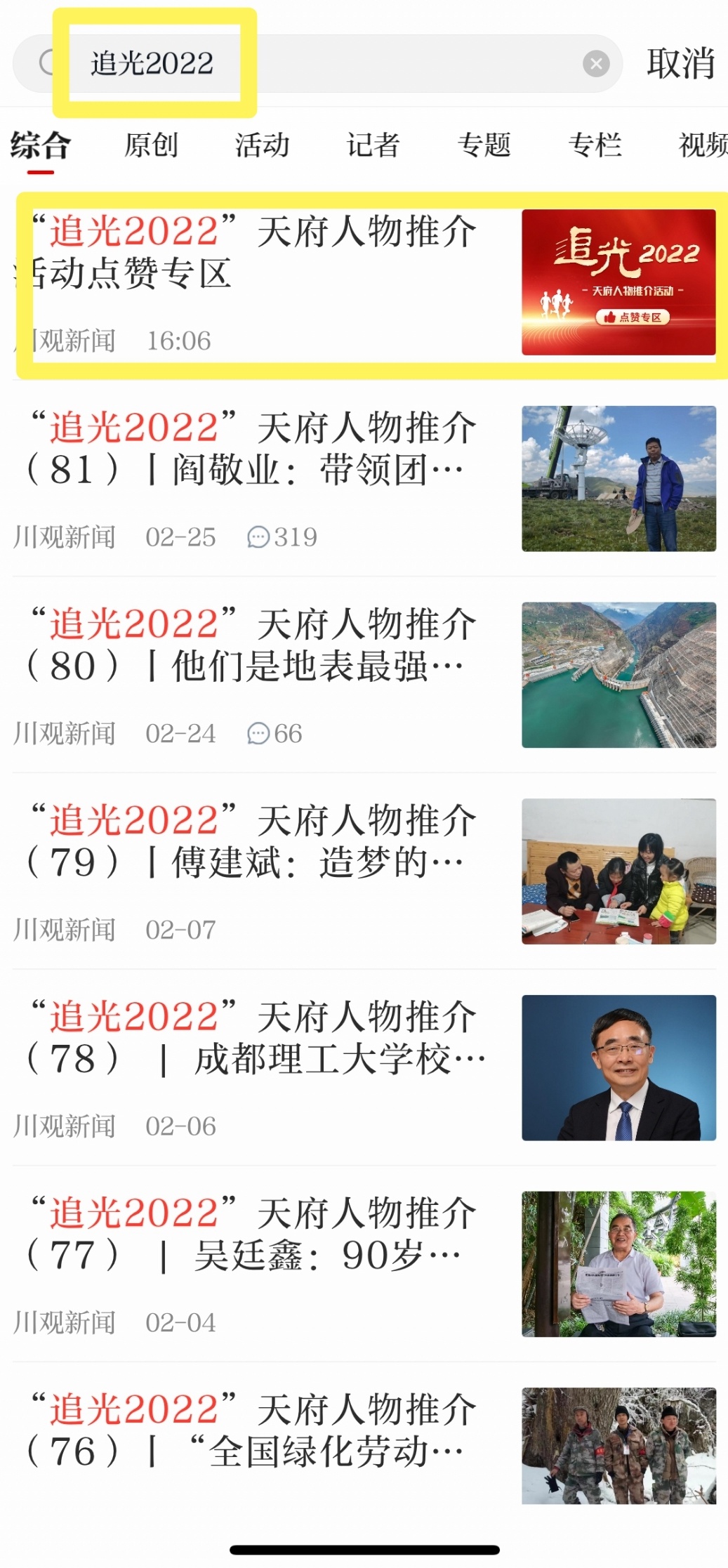 方式二:在川观新闻首页顶部搜索框输入“追光2022”,点击活动链接即可参与