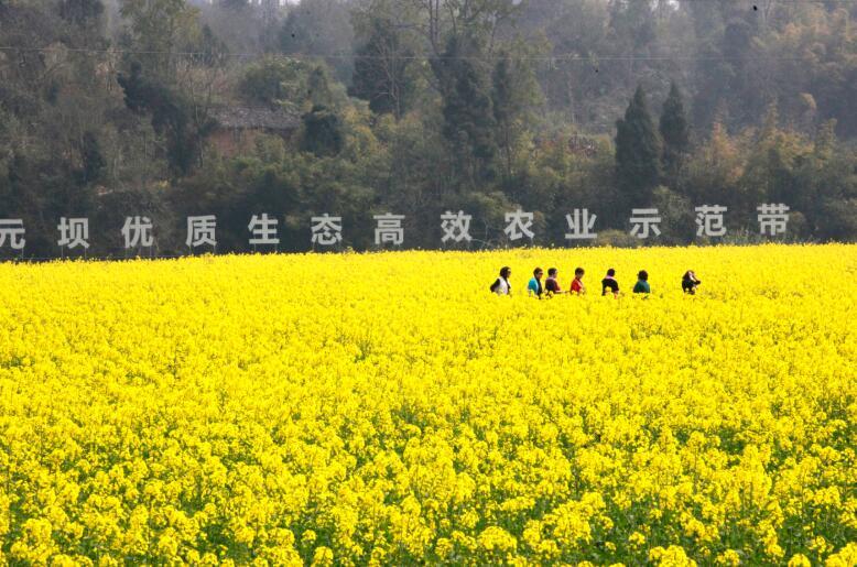 元坝镇位于安岳县西南方向,紧邻重庆,这里丘陵点缀着风景,具有山水田园的原生态风光,是郊游踏青胜地。每年这个时节,人们就会三五成群,穿行于元坝的河畔田间,赏桃花、摘草莓、拍菜花……西泉村安粮坝的油菜花田,既是赏菜花的主阵地,也是安岳县面积最大的油菜种植基地。