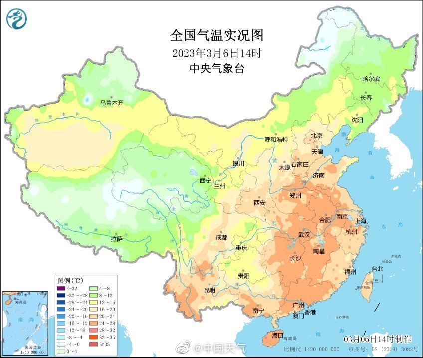今天(3月6日),全国大部地区的回暖形势如火如荼。截至14时,北京、天津、郑州等全国14个省会直辖市气温创下今年来新高,其中,郑州为今年北方首个站上25℃的省会级城市。
