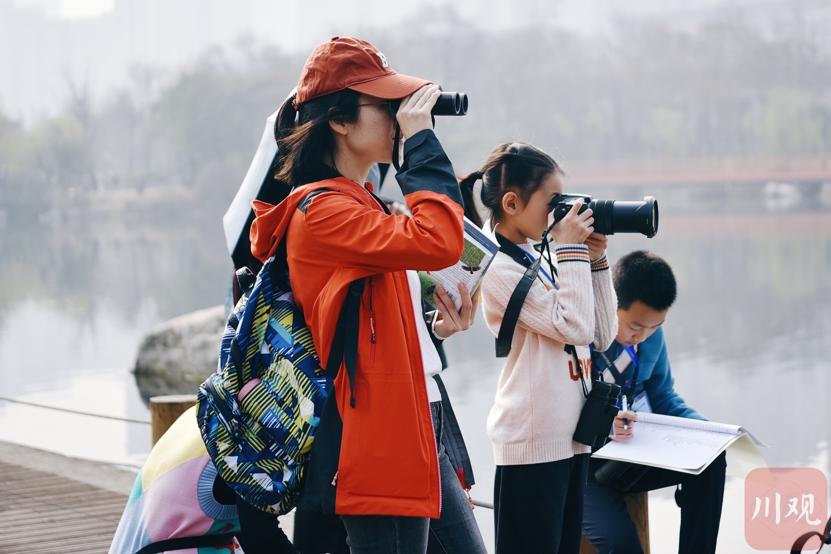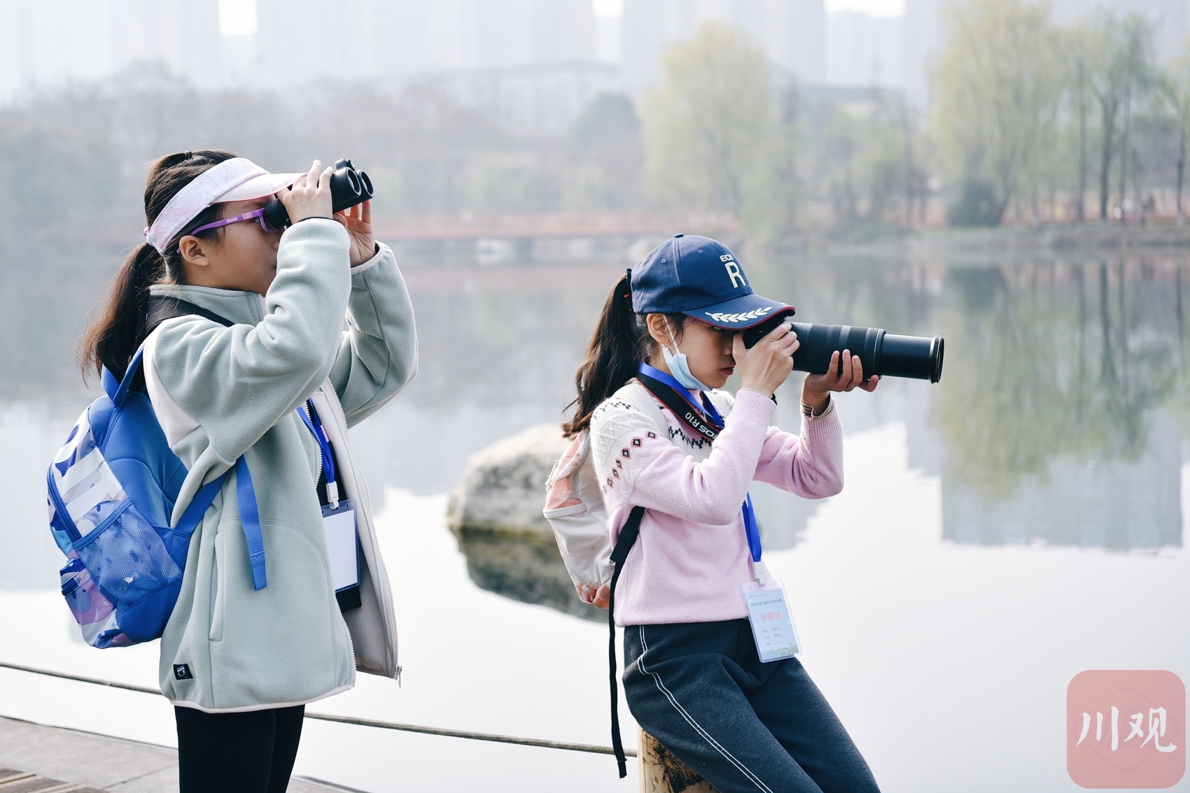 3月5日,锦城湖公园来了一群特殊的客人。中小学生们两三个为一组,带着相机和望远镜,时而寻找观察,时而蹲下等候,时而在笔记本上写写画画。原来,这里正在举办成都市第三届青少年观鸟赛。