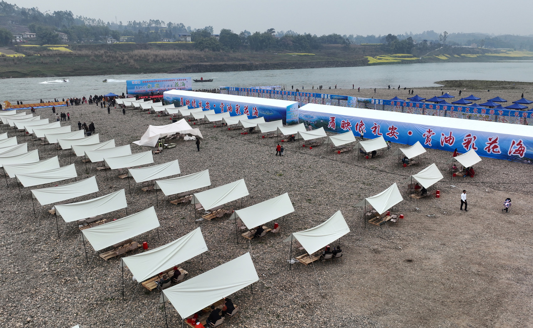 3月5日,广安市武胜县“大地油彩”乡村文化旅游节礼安分会场开幕。太极拳表演、最美油菜仙子评选、水上摩托艇、越野汽车、直升飞机等“水陆空”体验……丰富的活动吸引上万游客幕名而来,踏青赏花,“约会”春天。