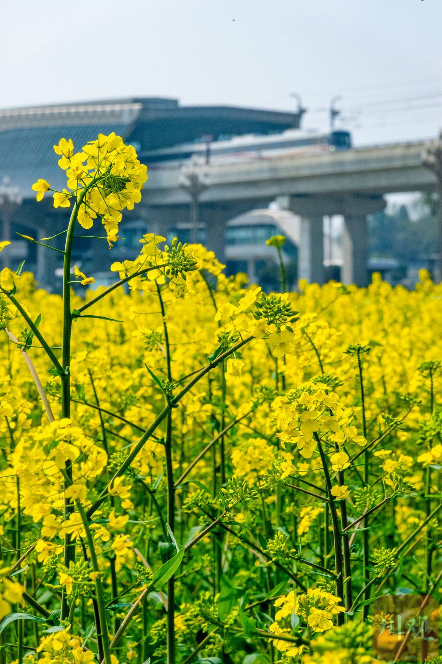 3月3日,成都市双流黄水镇地铁站周边,一望无际的油菜花海正在盛放,一列地铁正驶出站台,开往春天的列车奏响了金色的畅想曲。