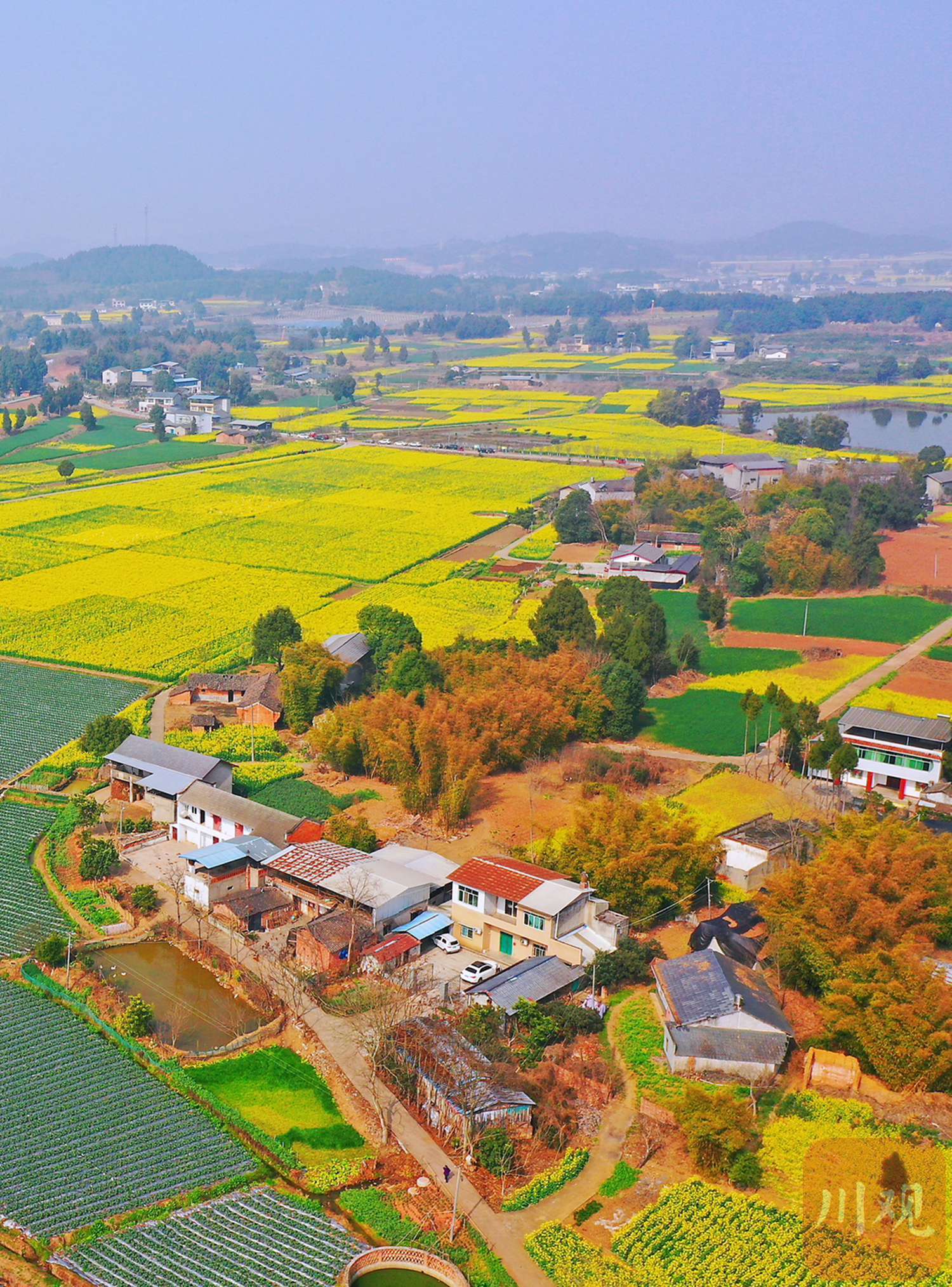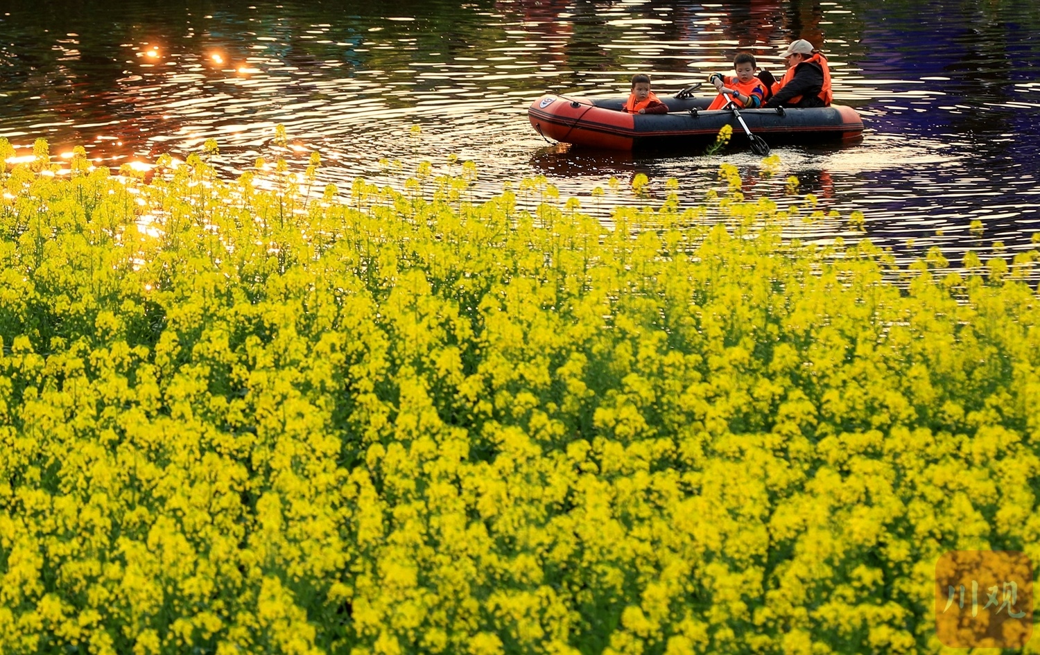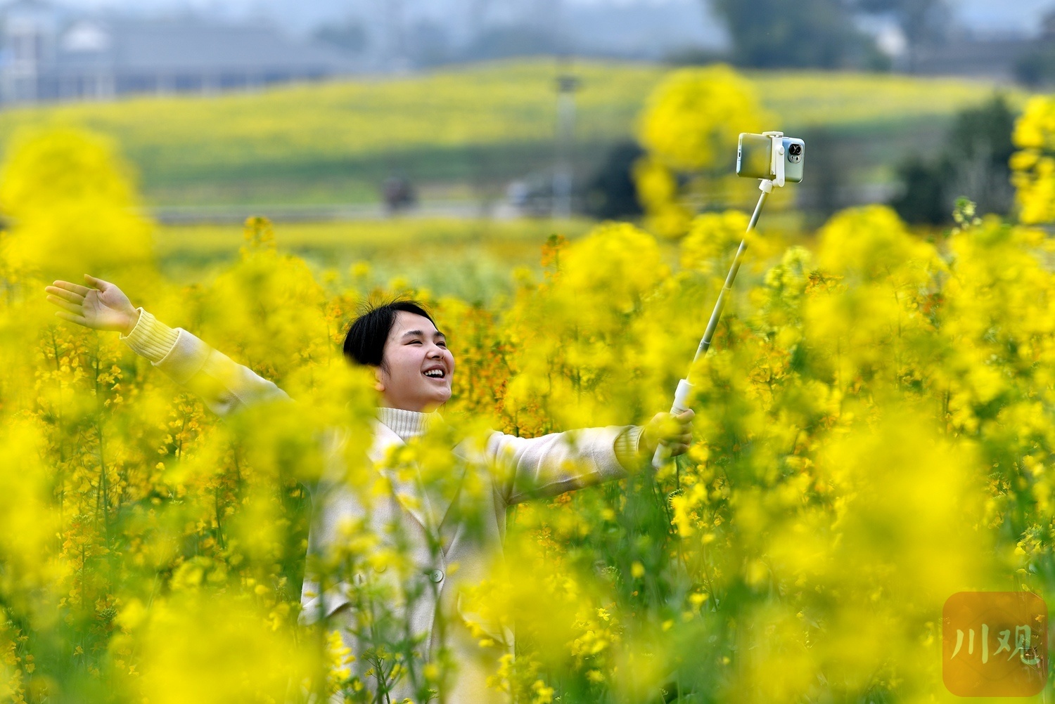 3月3 日,绵阳市涪城区杨家镇鲜家坝村上千亩油菜花间,以“五彩花田醉杨家”为主题的涪城“五朵金花”——杨家油菜花文旅季正式开季。