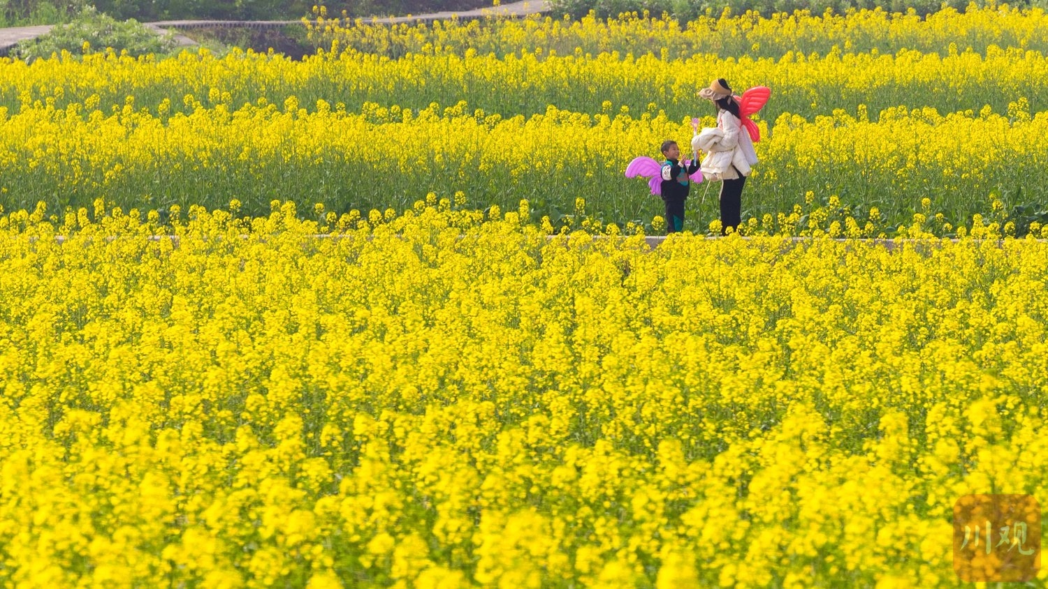 3月4日,广安区花桥镇以“花”为媒,举办万亩油菜花节,游客在菜花香里欢乐玩耍。这场春日盛宴,唱响了广安农旅融合乡村振兴曲。