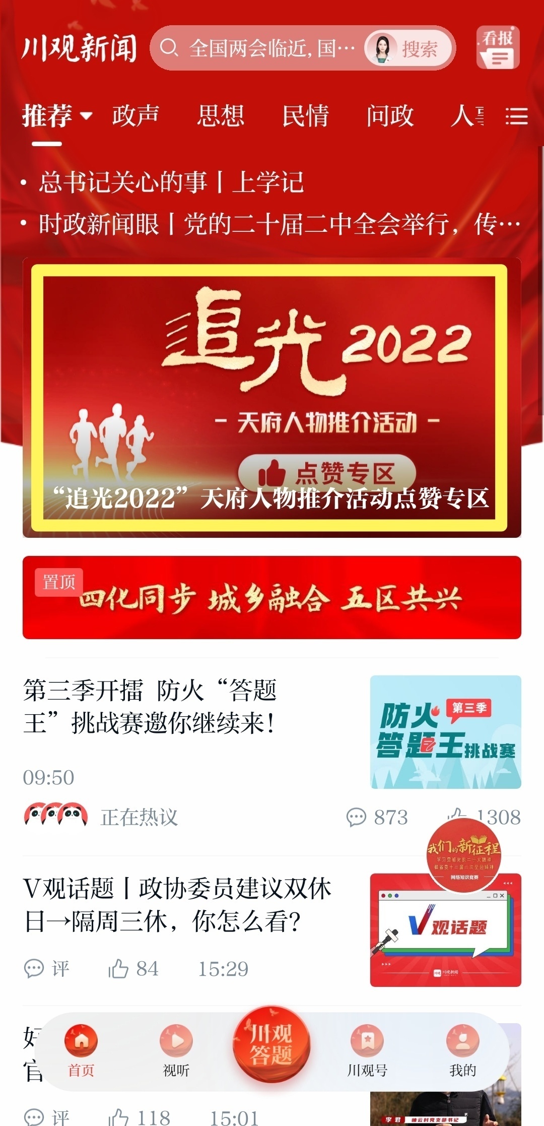 方式二:在川观新闻首页顶部搜索框输入“追光2022”,点击活动链接即可参与