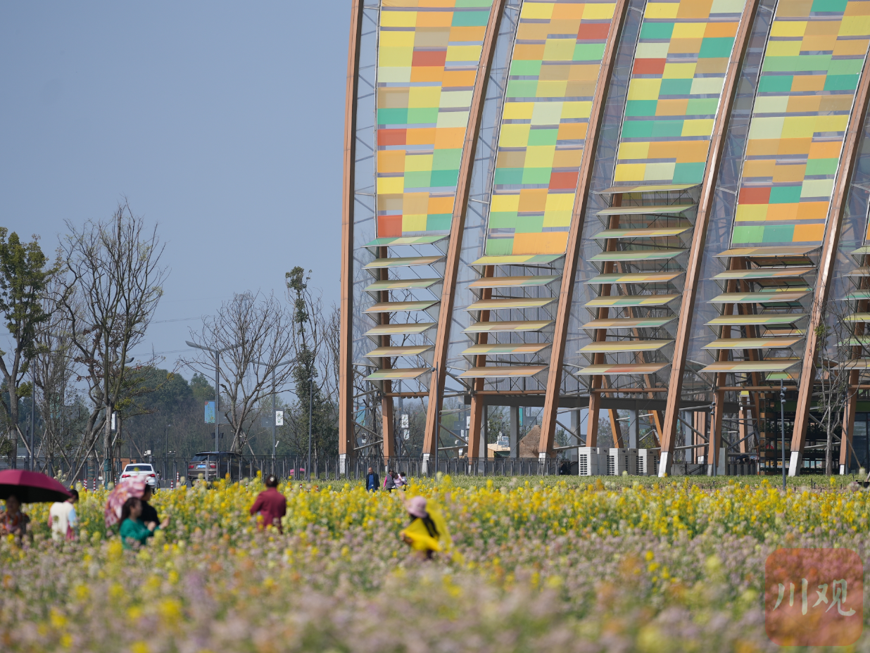 阳春三月,天府农博园里每一朵油菜花都明艳动人,蜂蝶飞舞,不少市民和游客前来打卡。