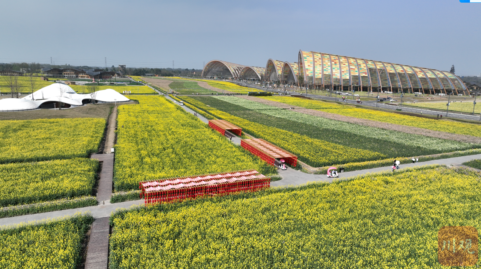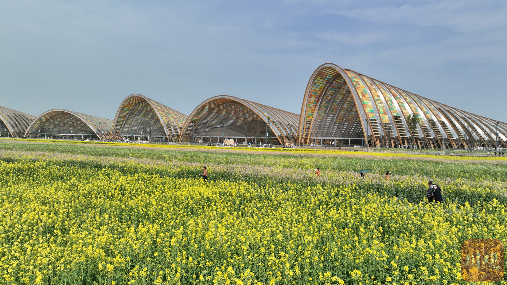 惊蛰过后,天气回暖,到处都洋溢着春天的气息。3月9日,位于成都新津区的天府农博园里的油菜花迎来盛开期。