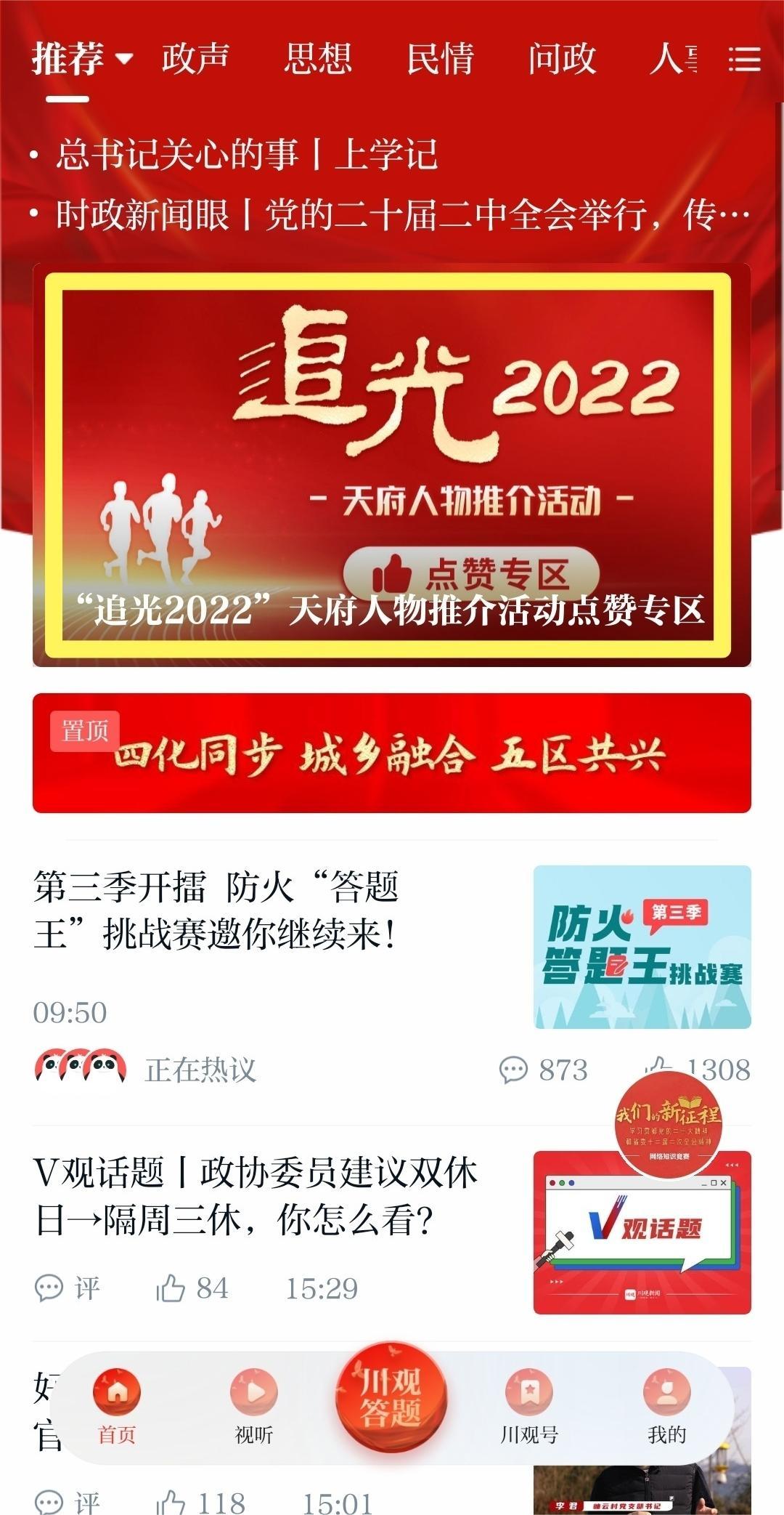 1、全网唯一点赞平台:川观新闻客户端(在手机应用商店搜索“川观新闻”下载安装)