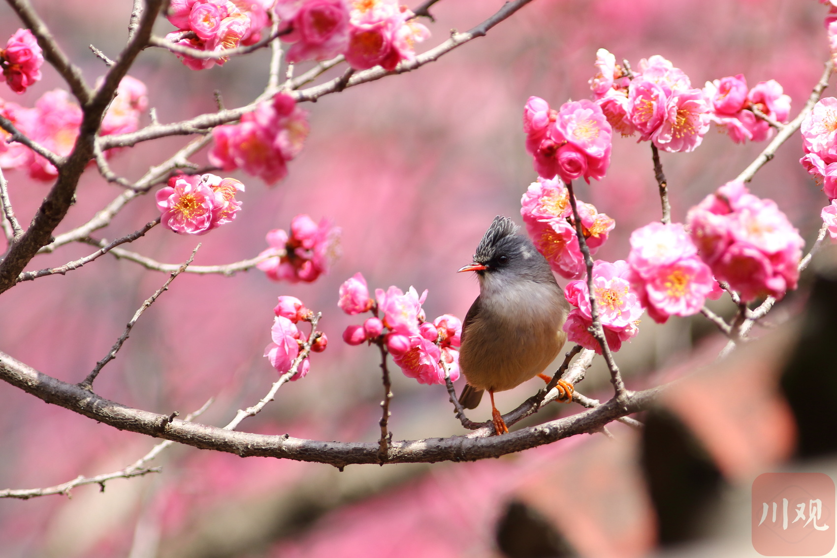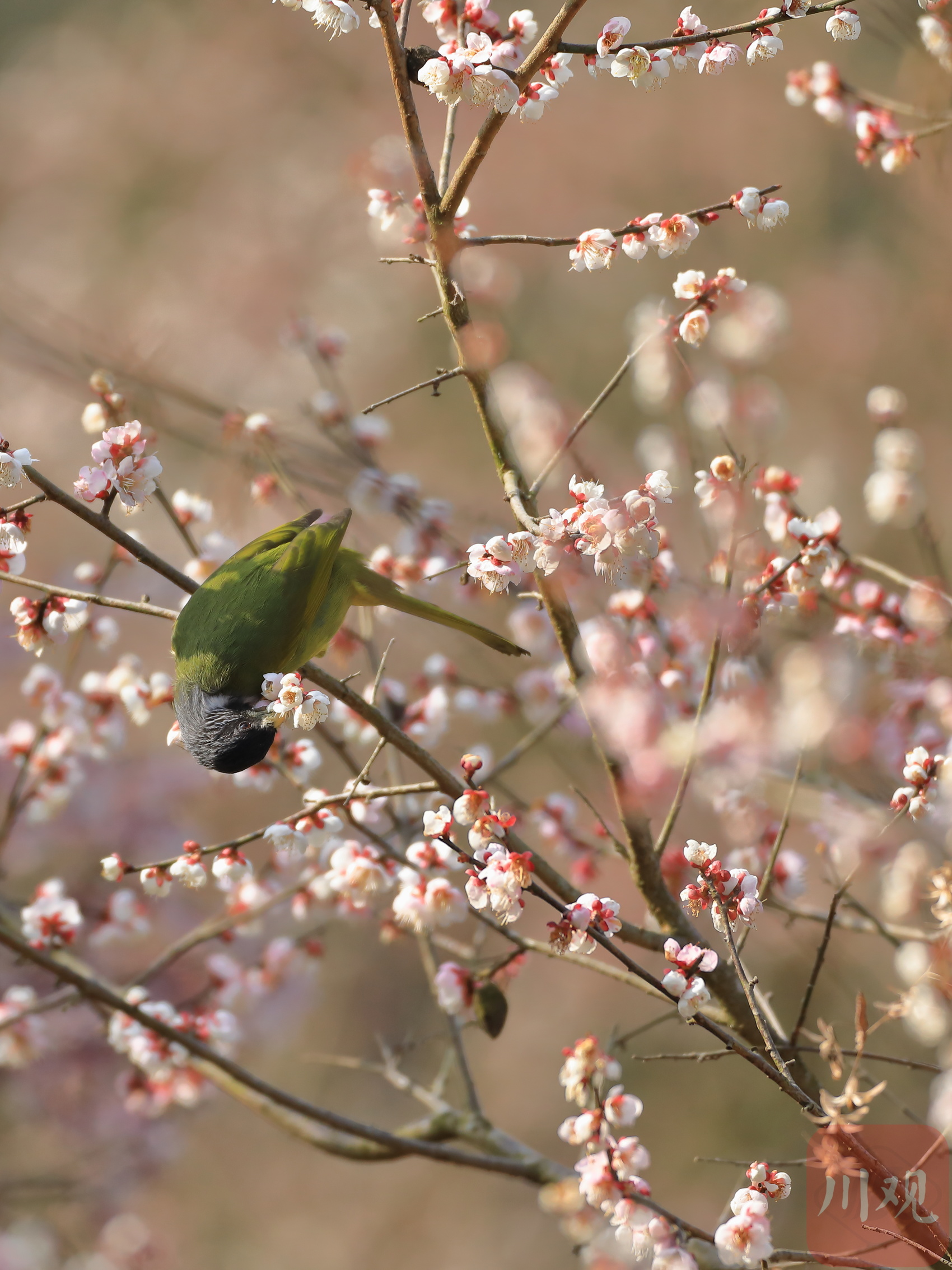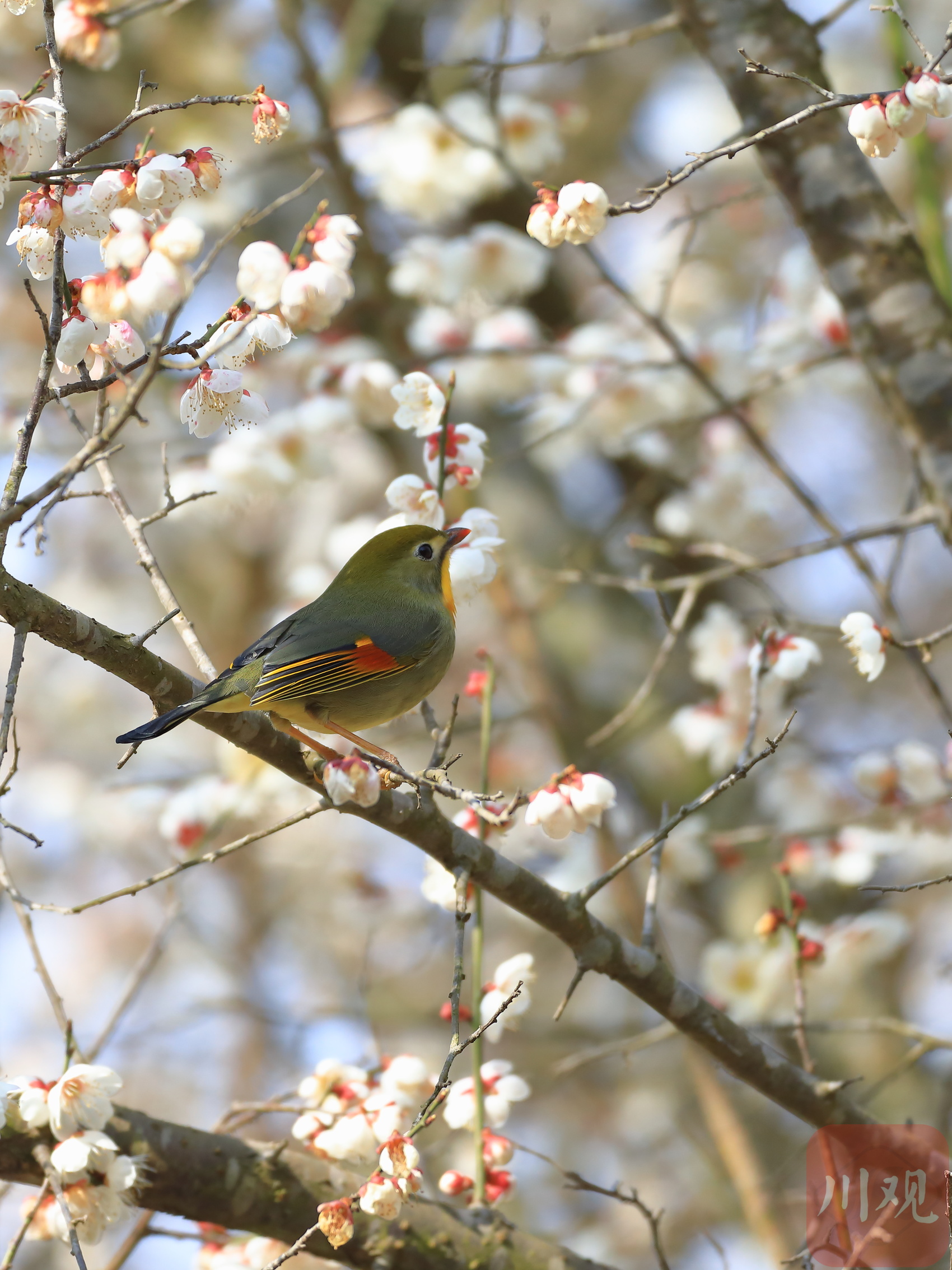 在平武县平通羌族乡印象梅林景区,春节后梅花从山脚到山顶次第开放,形成了万亩梅园十里花海的壮丽景观,不仅吸引游客踏春赏花,也引来了众多鸟儿花间飞舞、鸣唱春天圆舞曲。