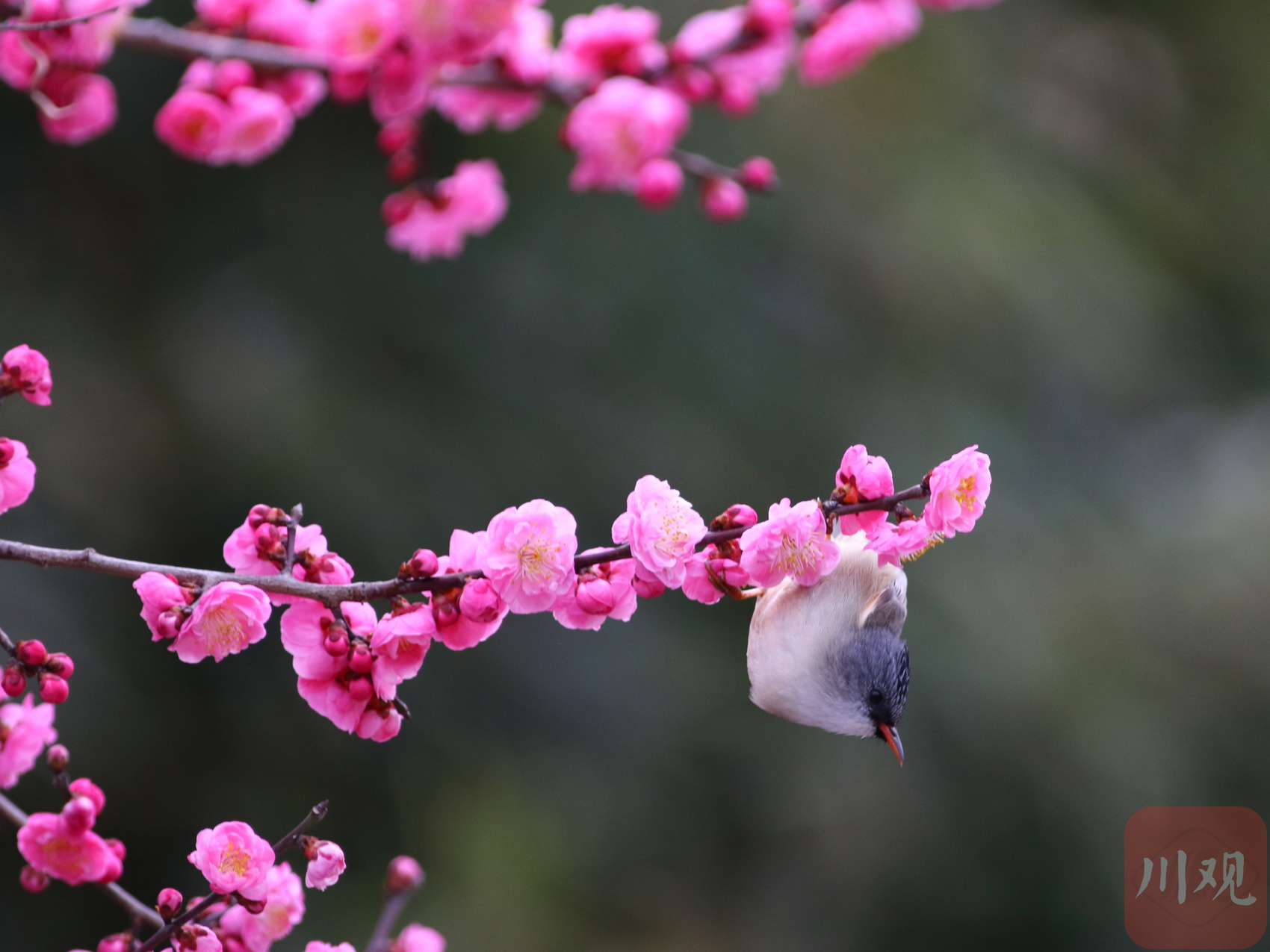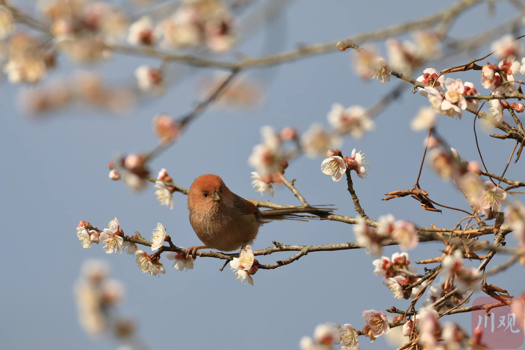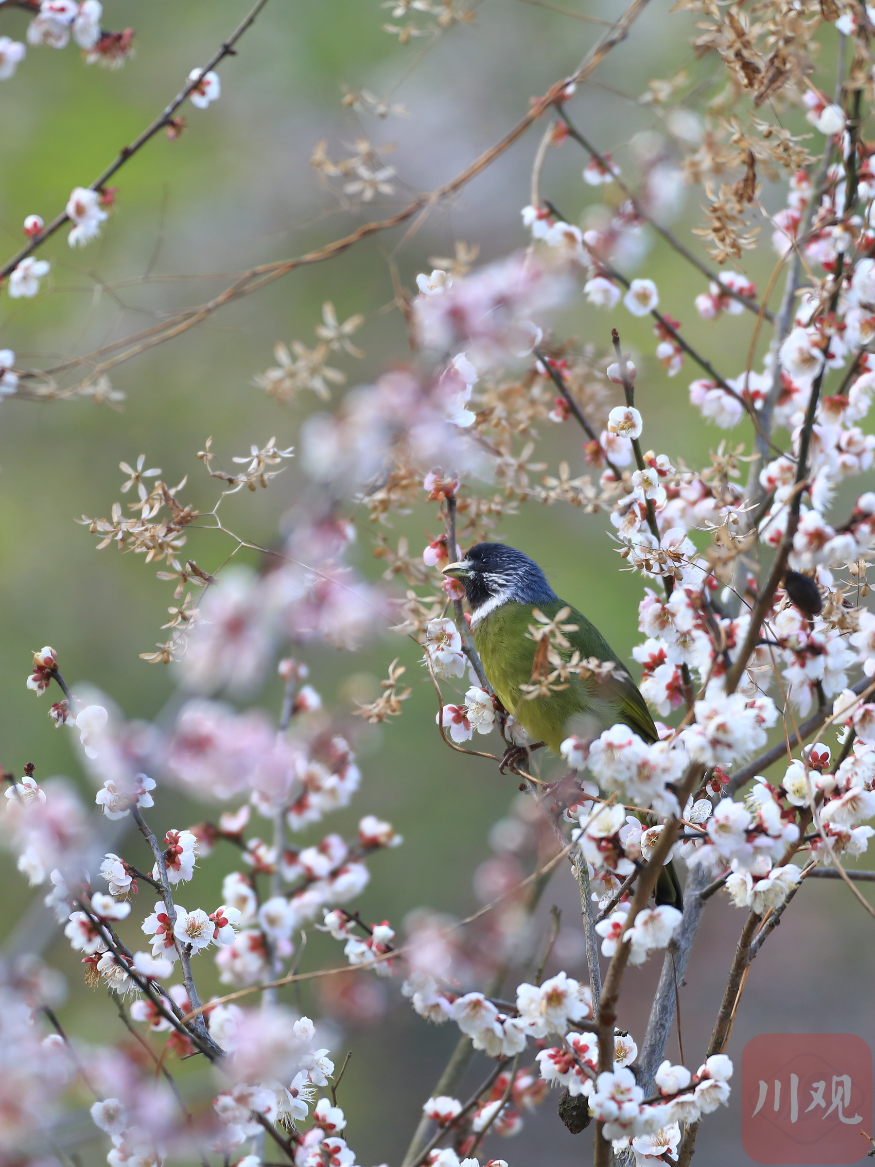 在平武县平通羌族乡印象梅林景区,春节后梅花从山脚到山顶次第开放,形成了万亩梅园十里花海的壮丽景观,不仅吸引游客踏春赏花,也引来了众多鸟儿花间飞舞、鸣唱春天圆舞曲。