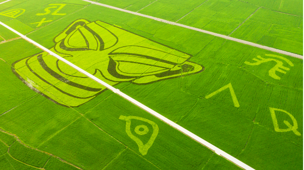 德阳广汉市三星堆元素稻田画。(德阳市委宣传部供图)