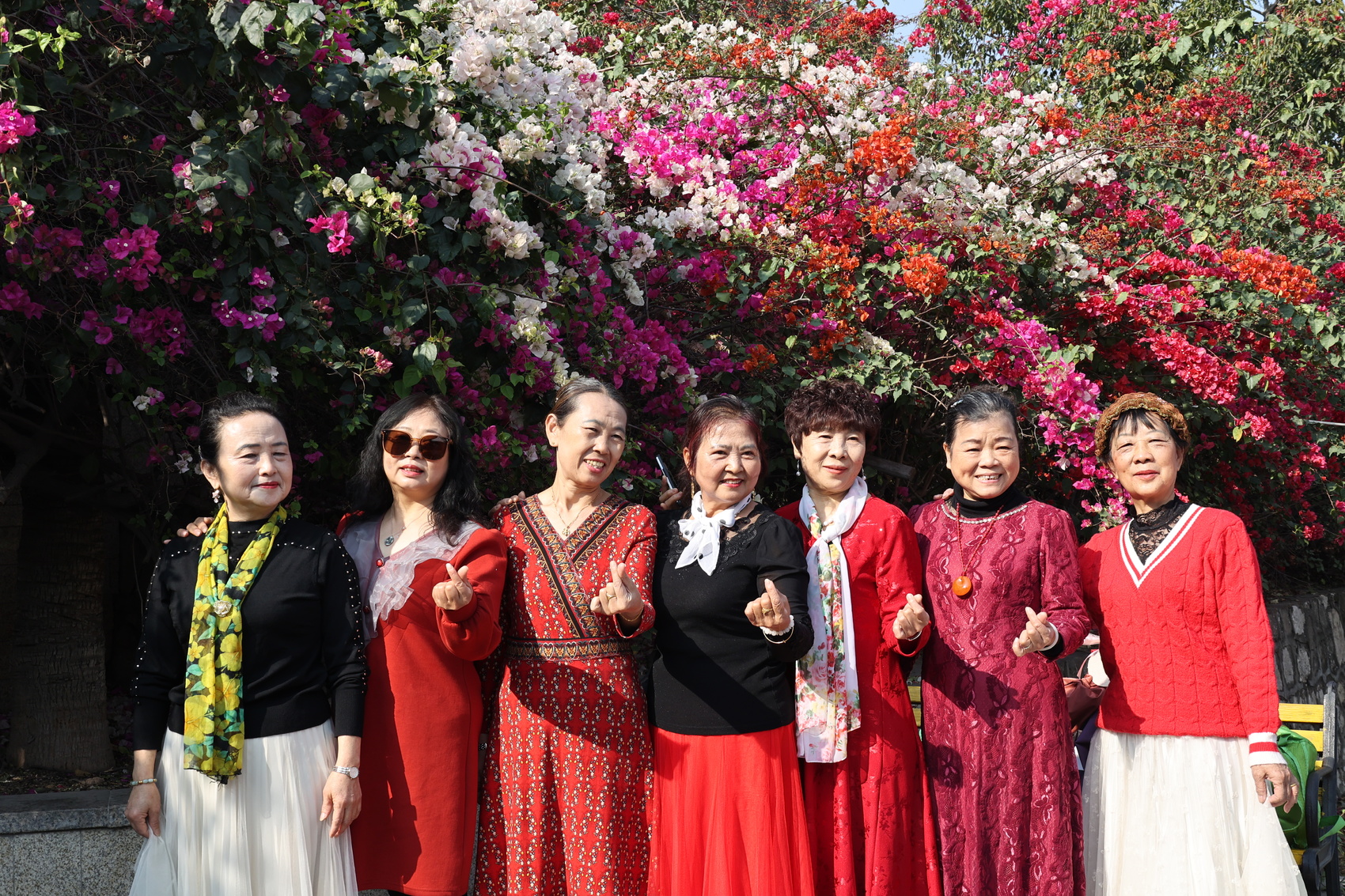 游客争相在三角梅花海下拍照打卡。湛璐霜摄。
