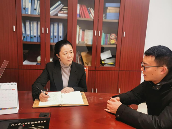 内江市纪委监委驻市民政局纪检监察组到受处分干部单位召开个别座谈会 陈永宜/摄