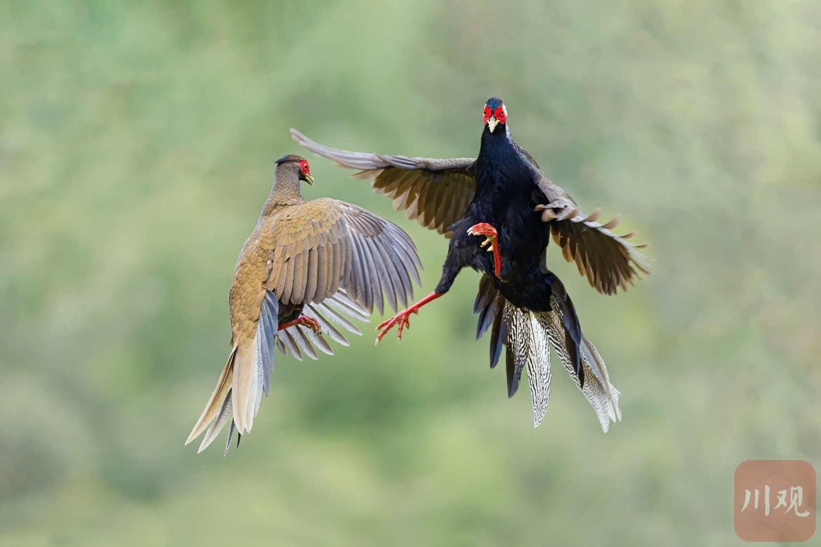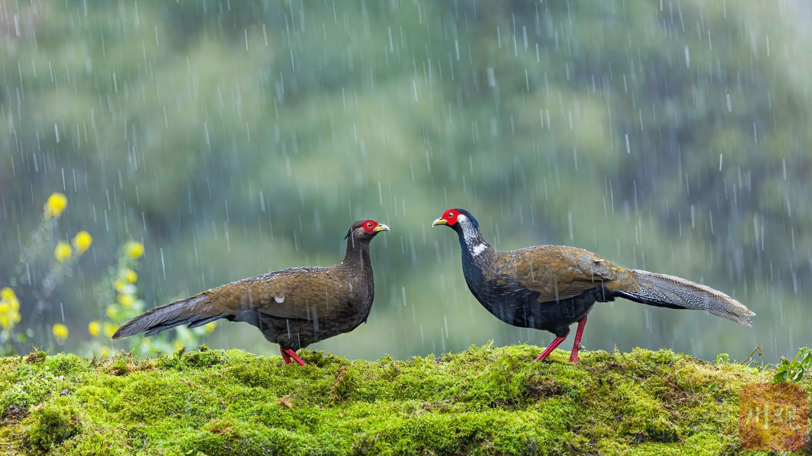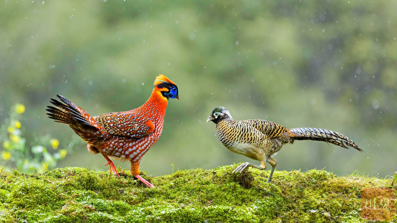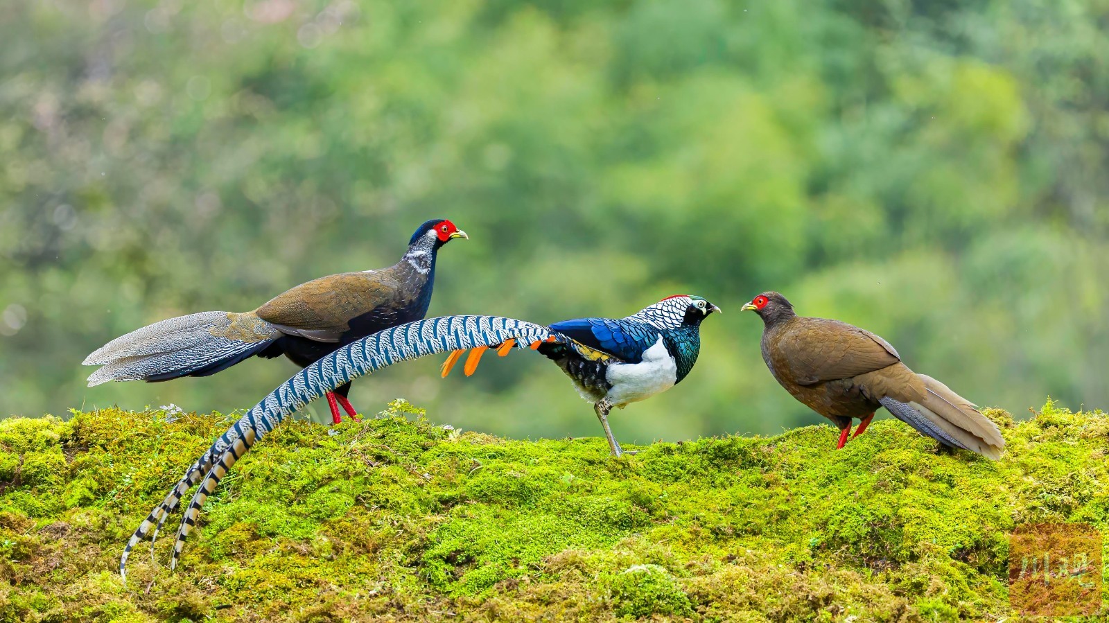 红腹角雉(雄)与白腹锦鸡(亚成雄)