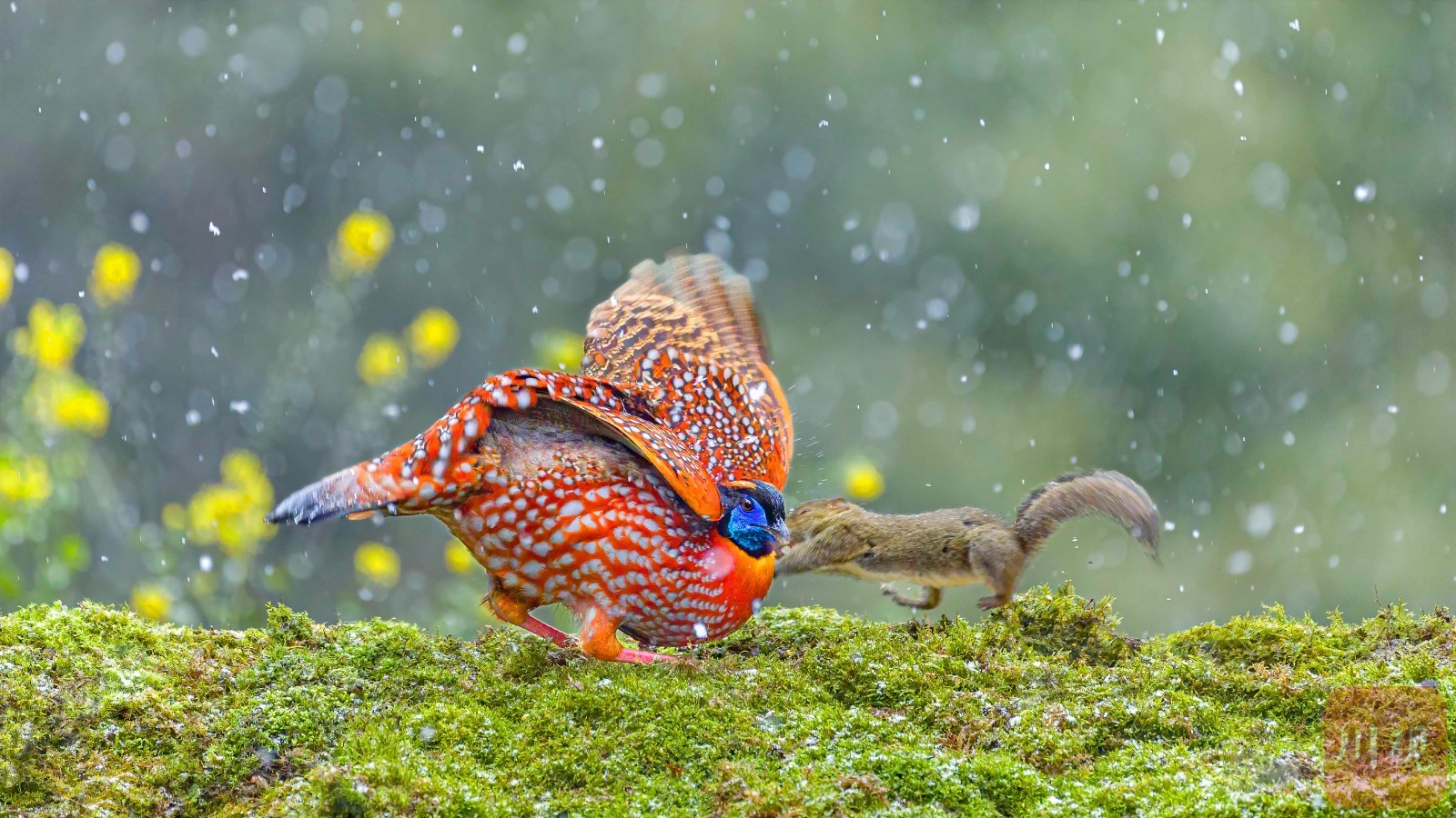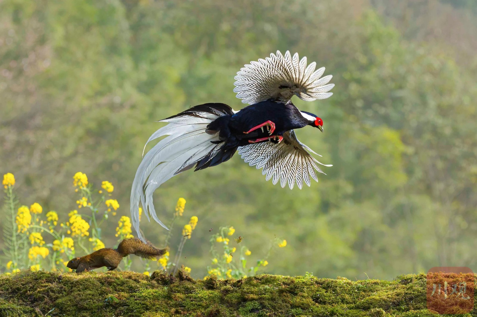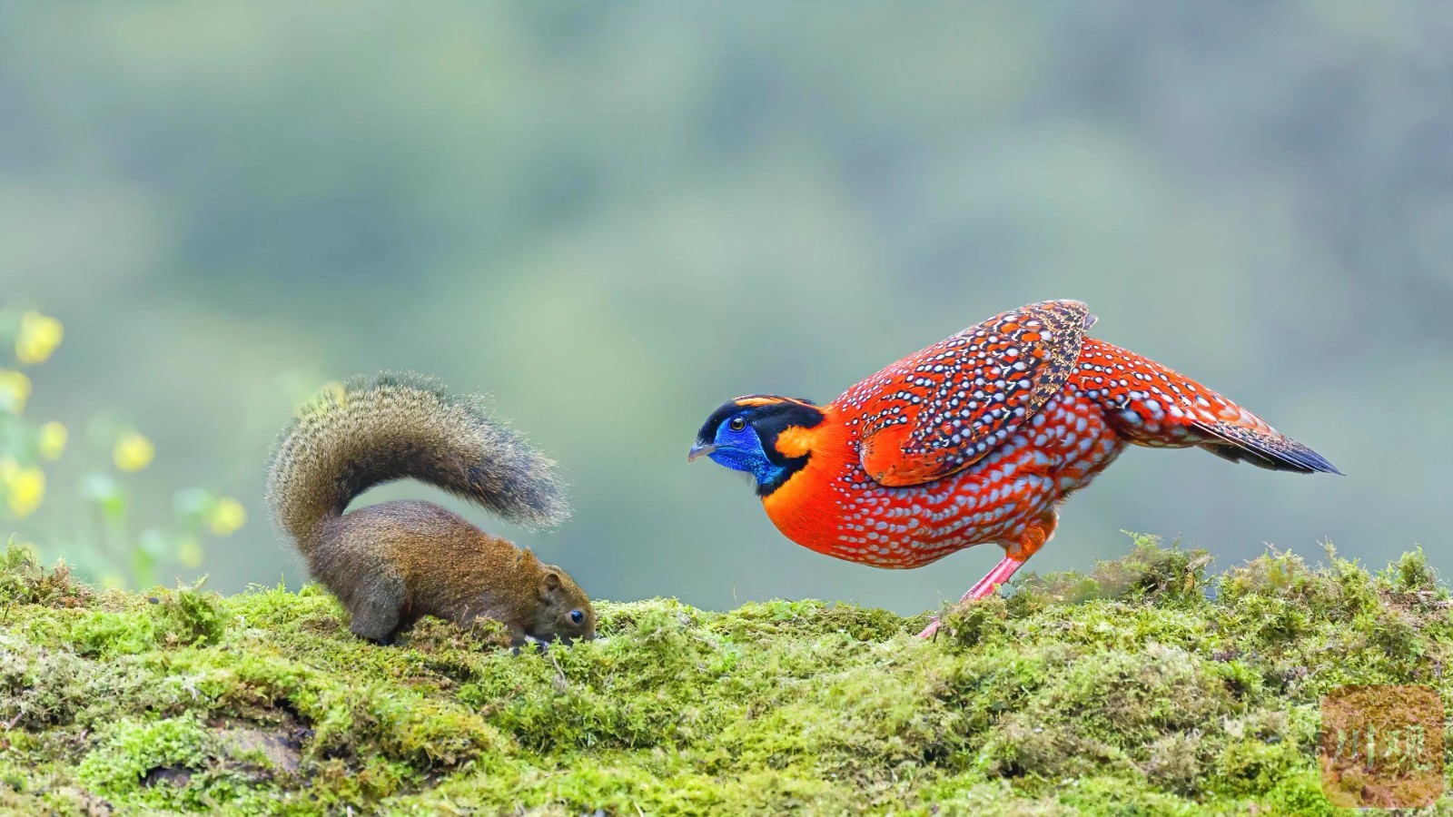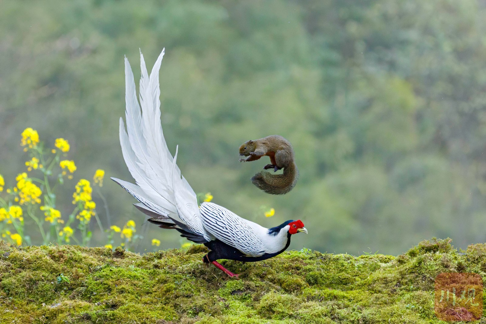 赤腹松鼠与白腹锦鸡(亚成雄)
