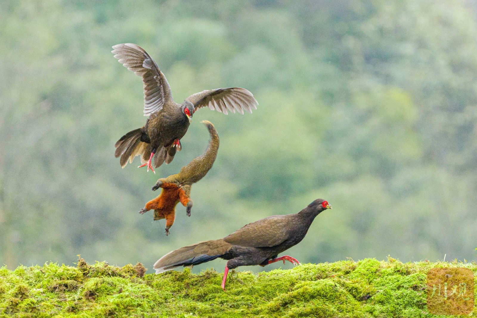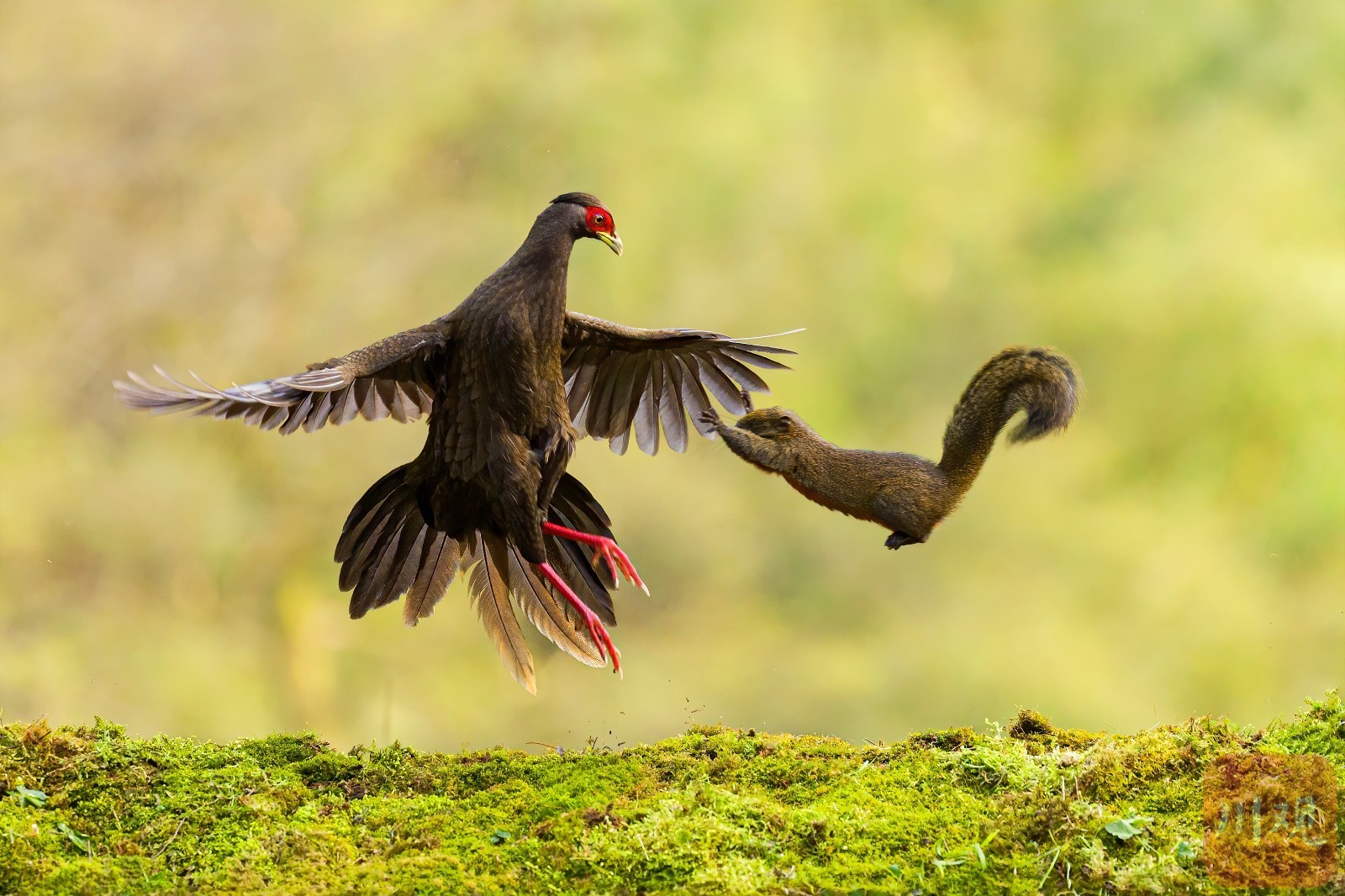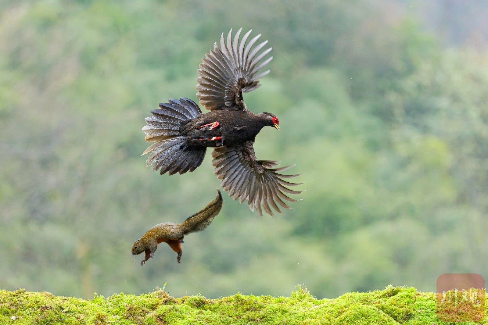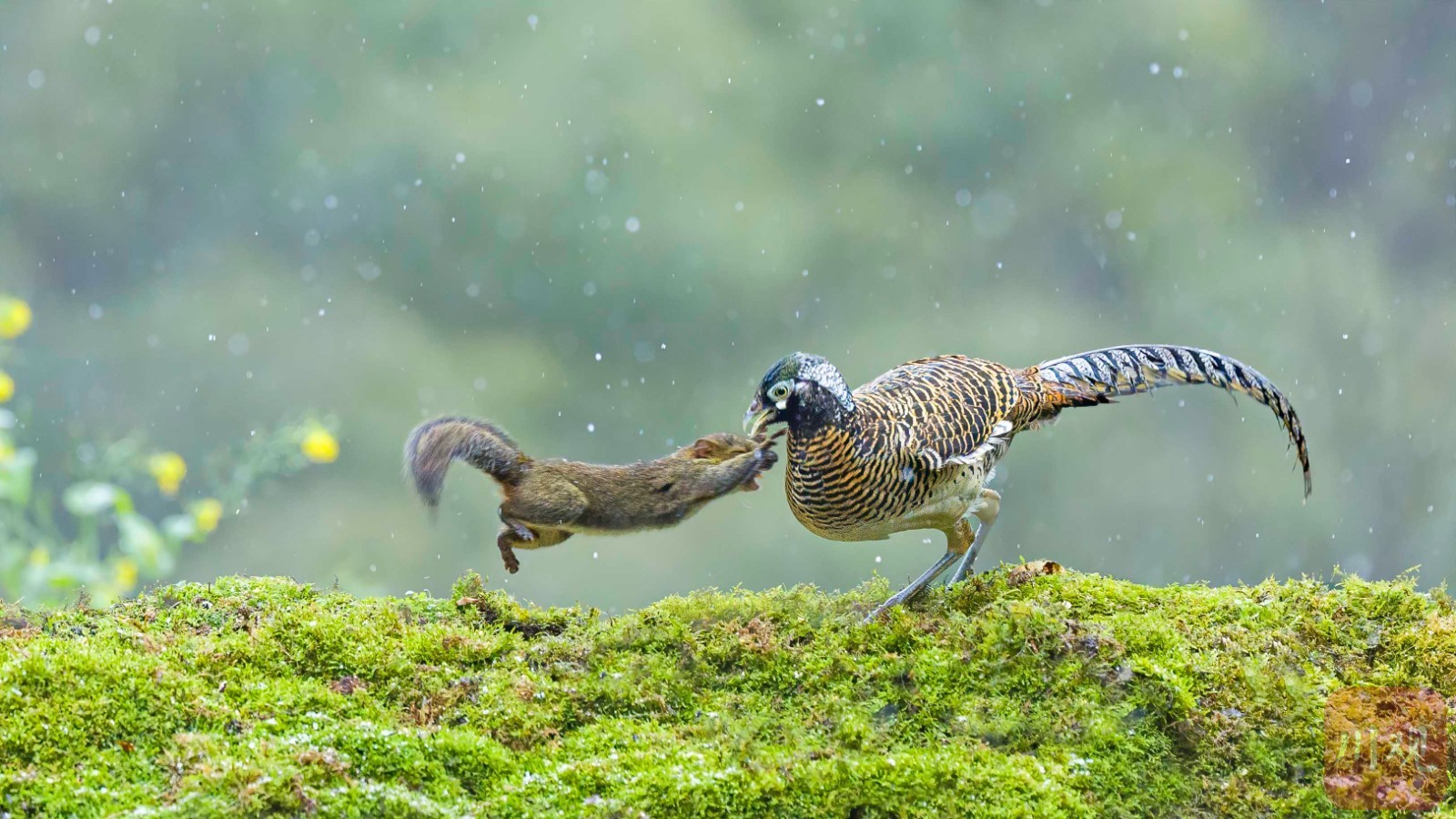 赤腹松鼠与白腹锦鸡(亚成雄)
