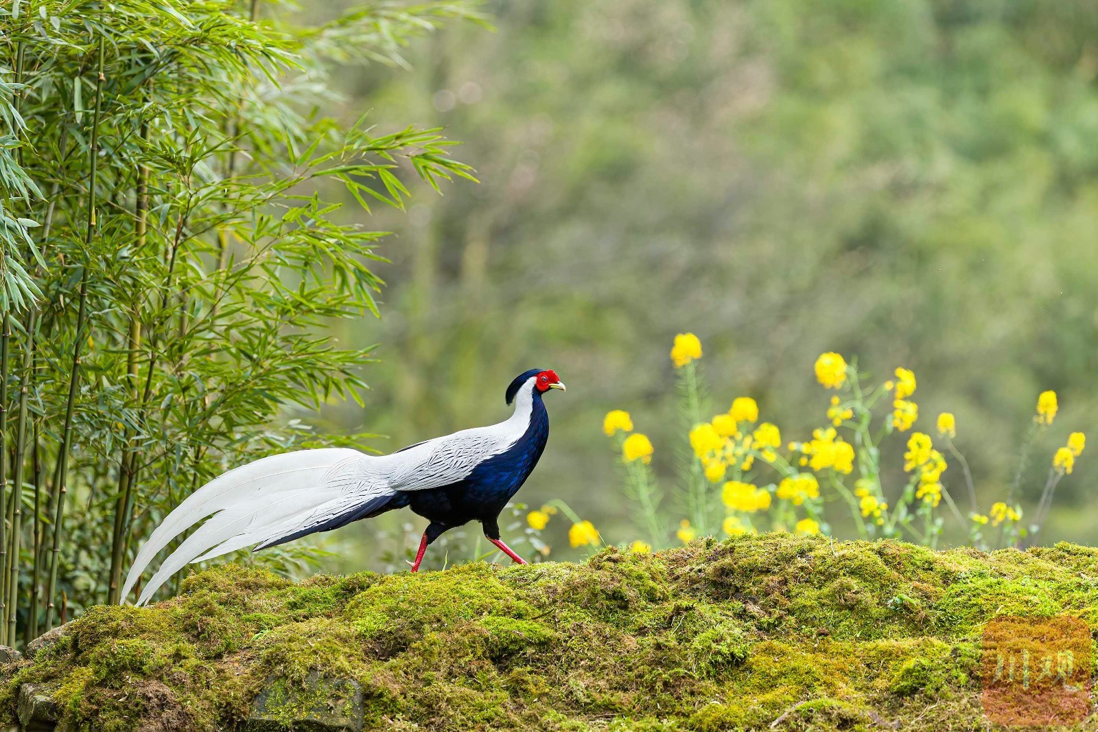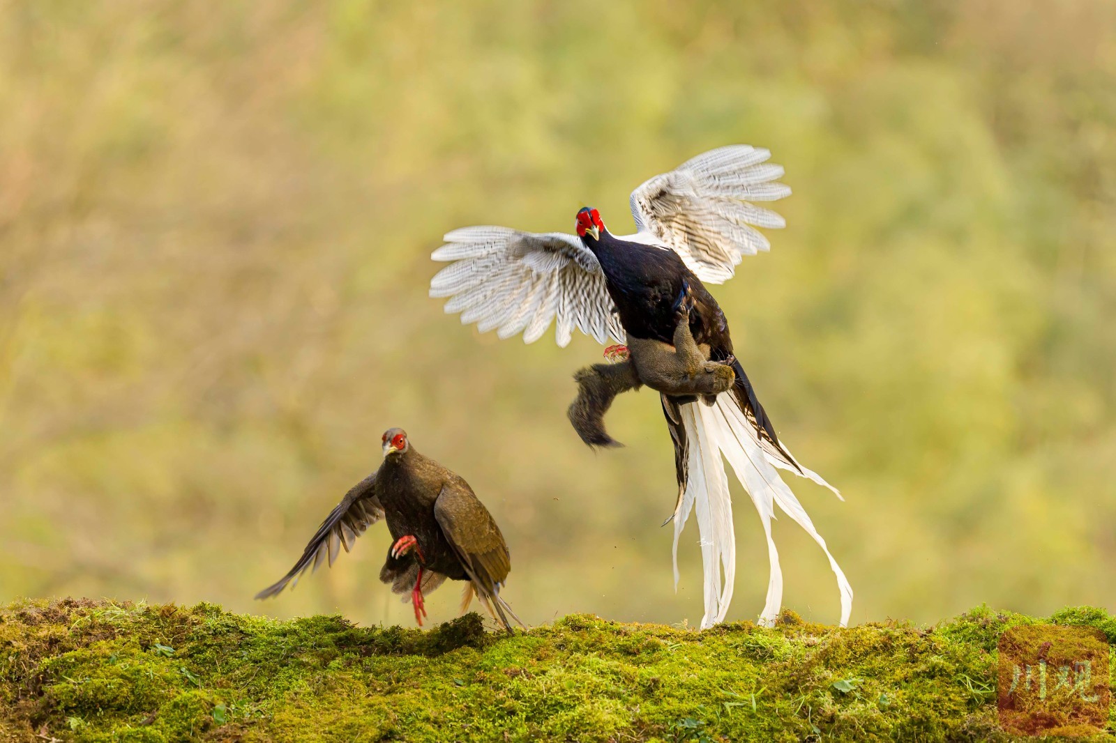 白腹锦鸡(雄)与白鹇(亚成雌雄)