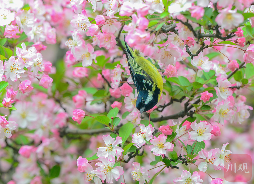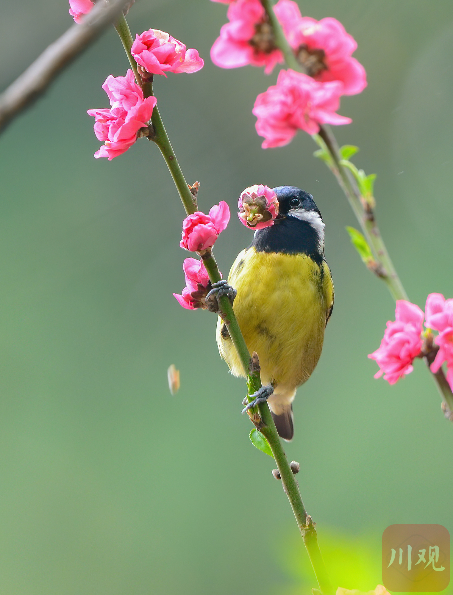 黄腹山雀,是雀形目山雀科黄腹山雀属的鸟类。俗名采花鸟、黄豆崽、黄点儿。全长约10cm,是中国特有鸟类,属稀有鸟类,应注意保护。腹部黄色,体型较小且无大山雀及绿背山雀胸腹部的黑色纵纹。黄腹山雀在山雀家族中是少有的“夫妻”双栖双飞鸟,可以说是山雀中的爱情鸟。