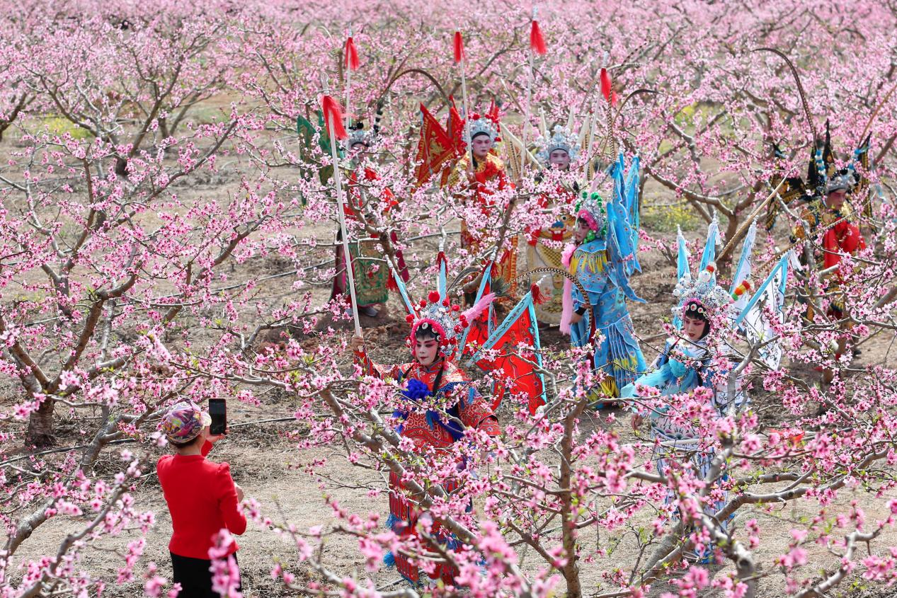 游客在千亩桃花园拍照打卡。陈冬冬 摄