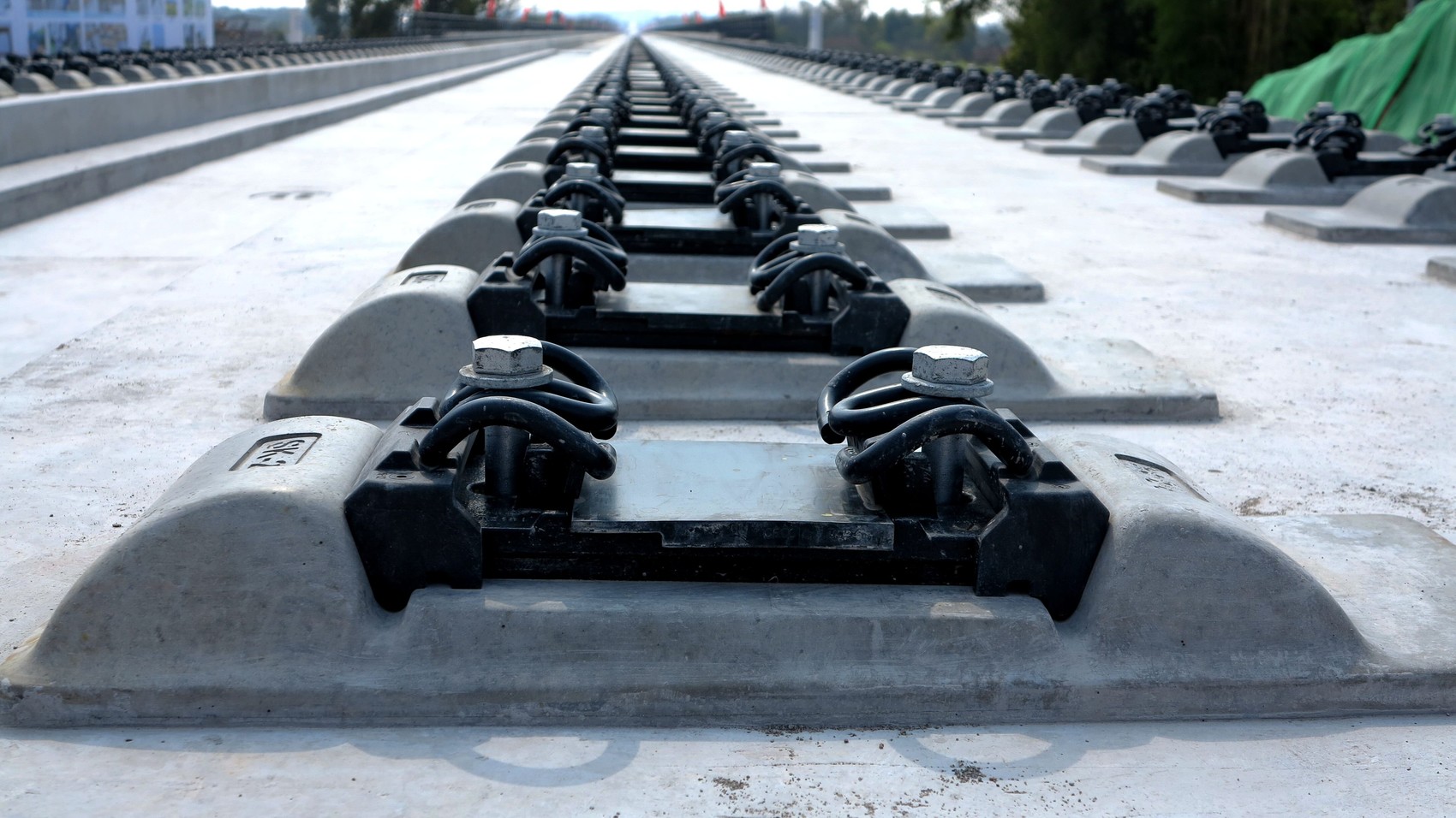 无砟轨道是铁路钢轨铺设前的最后一道工序。