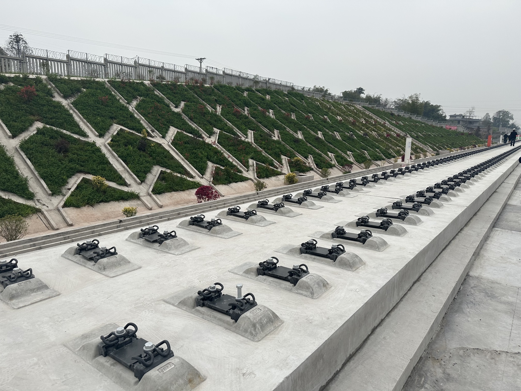 项目部相关负责人介绍,高速铁路轨道分为“有砟”和“无砟”两种,无砟轨道平整度更高、稳定性更强。列车通过有砟轨道时需要减速,而通过无砟轨道时则“如履平地”。渝昆高铁川渝段使用的是CRTS双块式无砟轨道,三标段范围内正线无砟道床施工约77公里,其中路基段约21公里,桥梁段54.6公里,隧道段约1.4公里。
