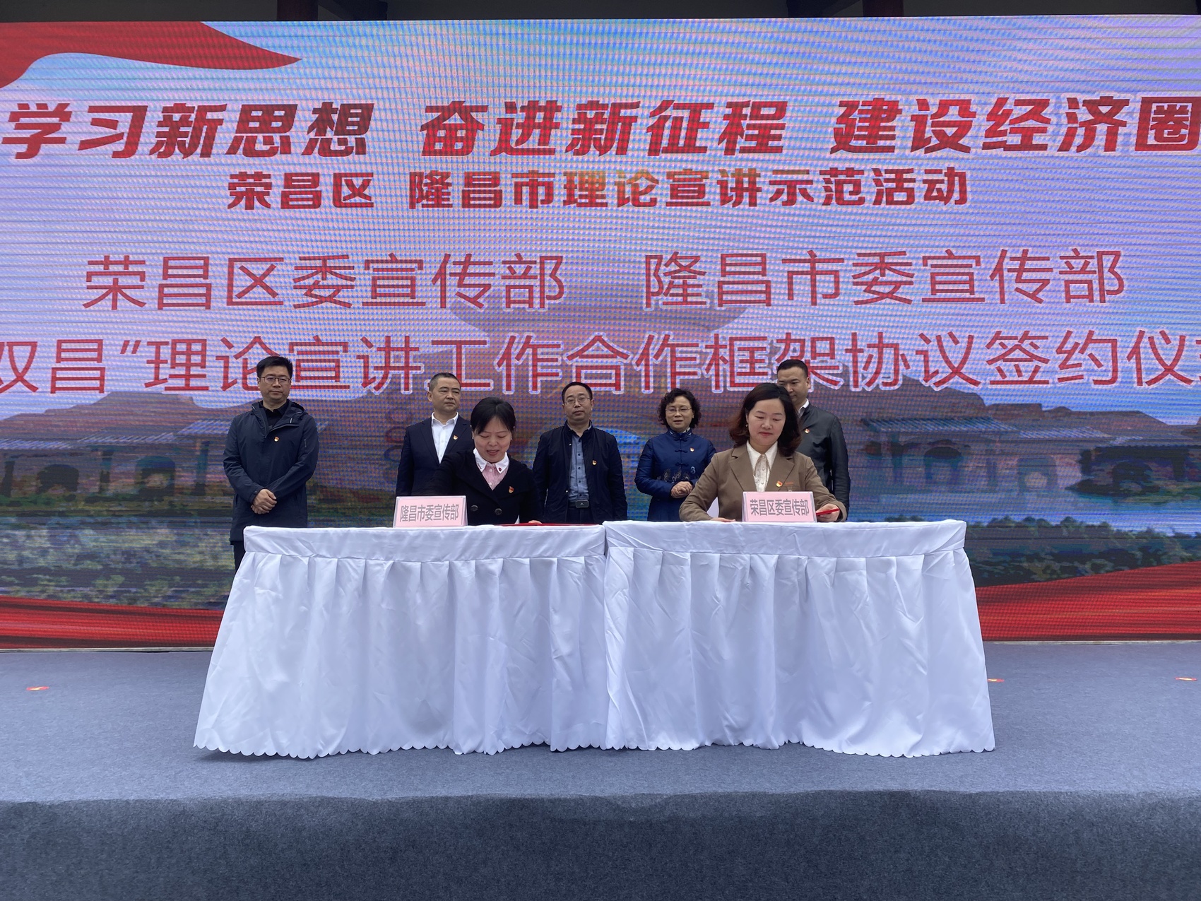 值得关注的是,宣讲结束后,重庆市荣昌区委宣传部与隆昌市委宣传部签订了推进“双昌”理论宣讲工作合作框架协议,现场为24名宣讲员颁发“双昌”基层理论宣讲队聘书。