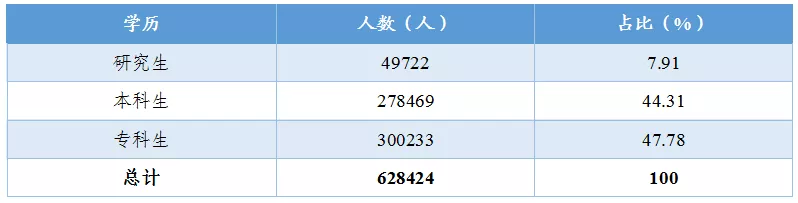 《报告》显示,四川省2023届高校毕业生预计共62.8万余人,其中研究生49722人,占比7.91%;本科生27.8万余人,占比44.31%;专科生30万余人,占比47.78%。